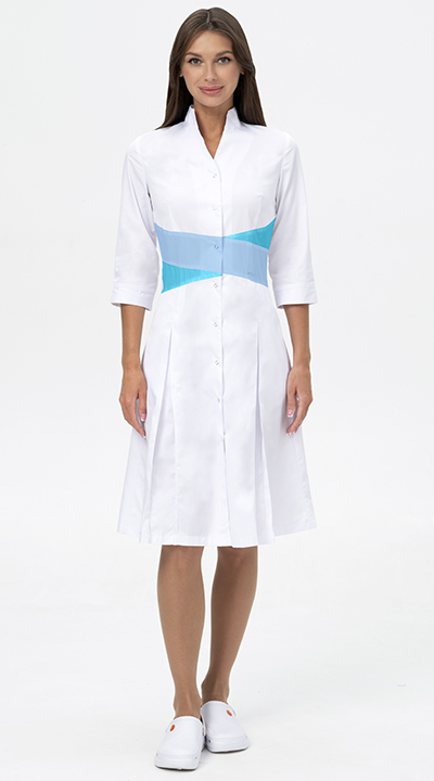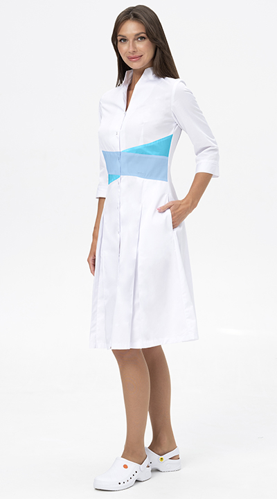 Покупайте Халат МОНИКА, белый - бирюза по цене 1628.7 руб. оптом или в розницу в магазине спецодежды СнабТим. Большой выбор защитной одежды, СИЗ и других хозтоваров в Набережных Челнах. Заказывайте онлайн или по телефону +7 (991) 190-59-22