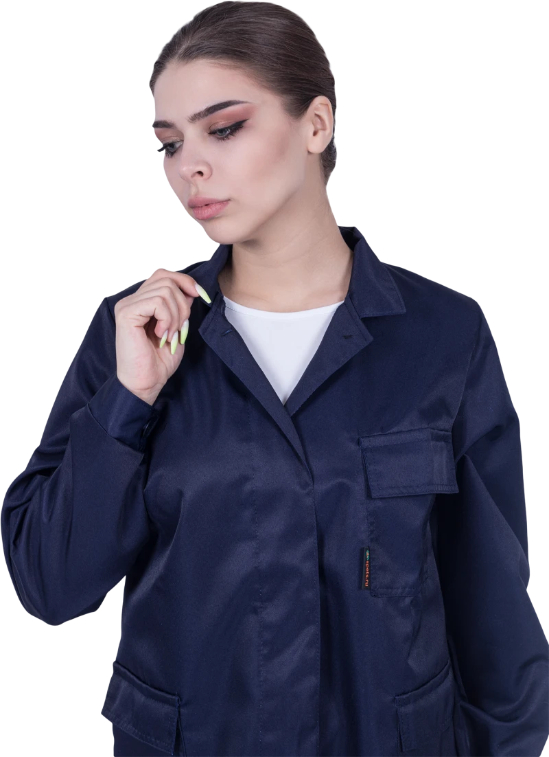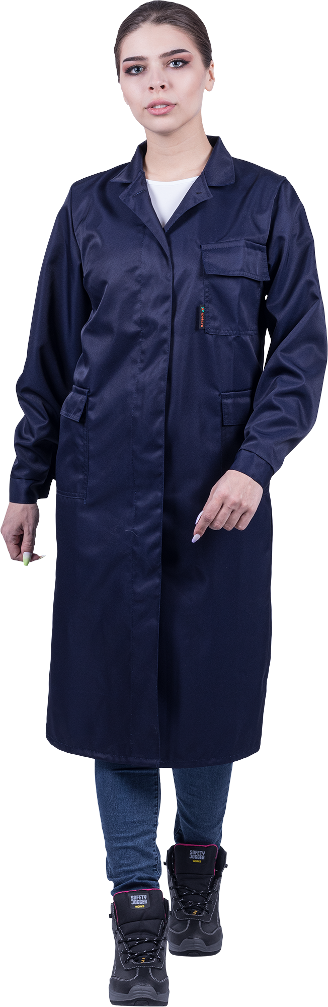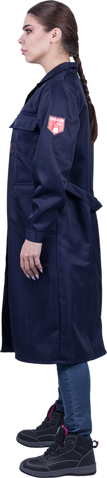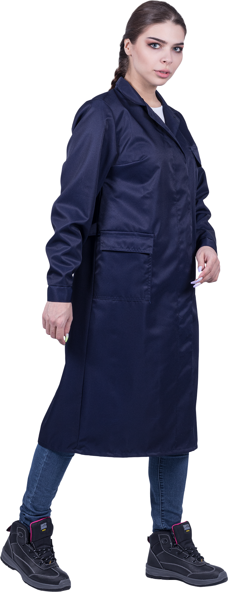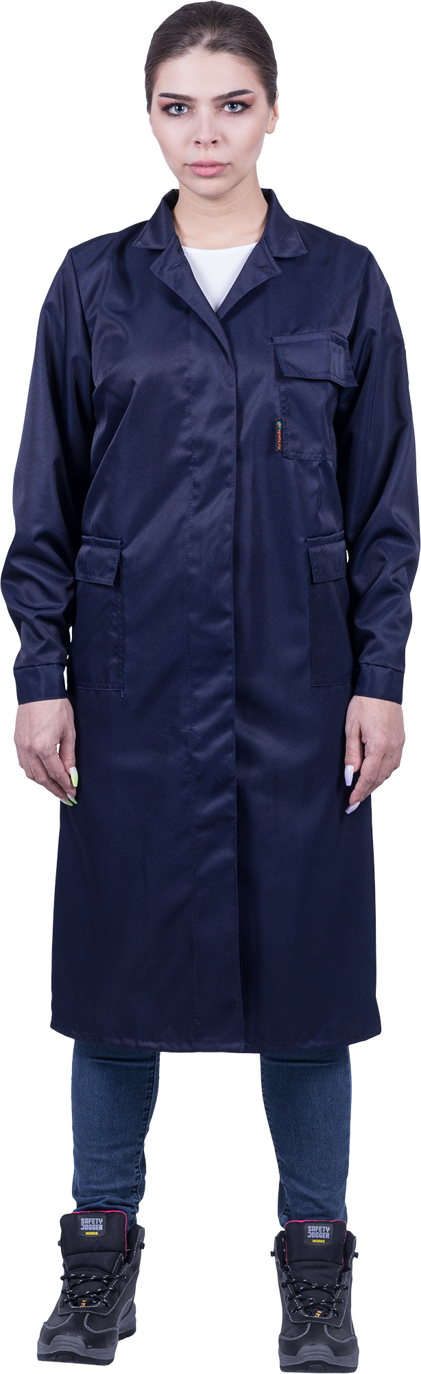 Халат женский от растворов кислот и щелочей, механических воздействий, темно-синий