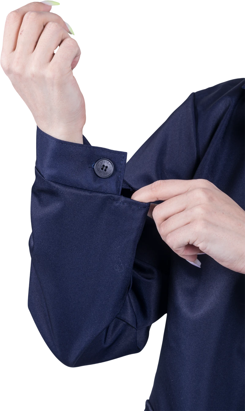 • рукава втачные, с манжетами, застёгивающимися на пуговицы