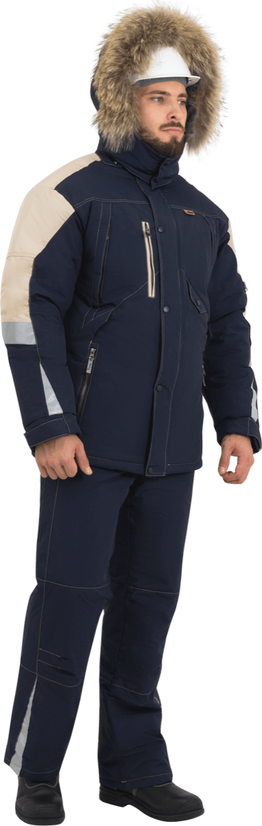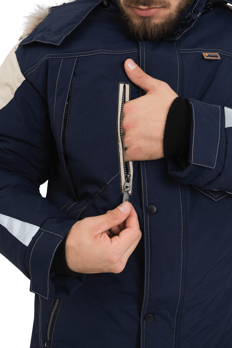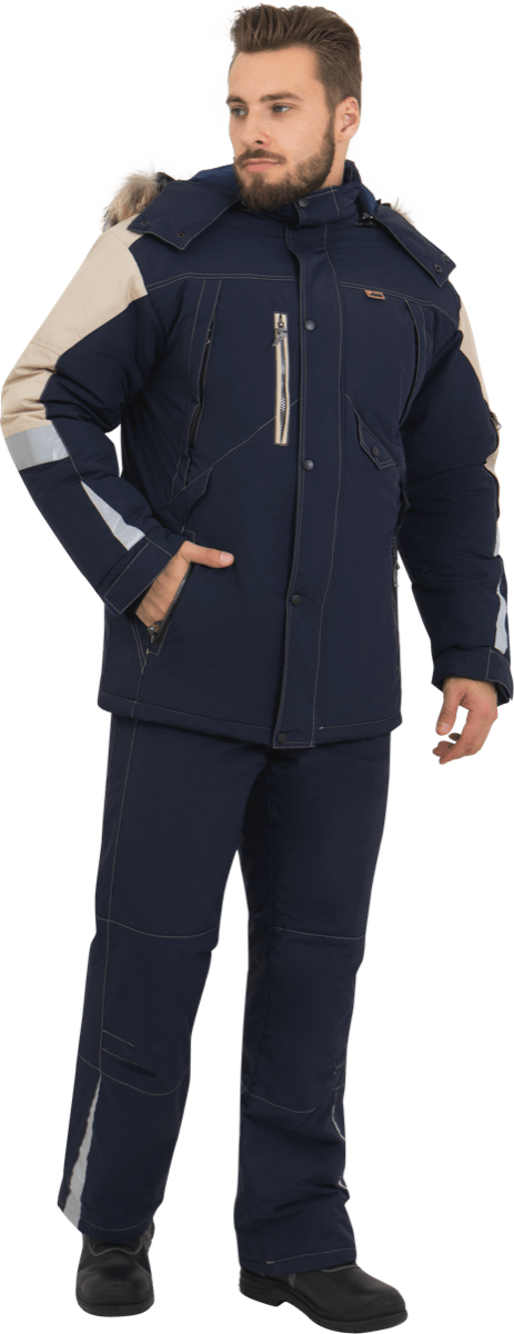 Купить Куртка мужская ХАЙ-ТЕК от пониженных температур воздуха и ветра, механических воздействий и ОПЗ, синий/бежевый вы можете в компании СнабТим, оформив заказ в интернет магазине, или