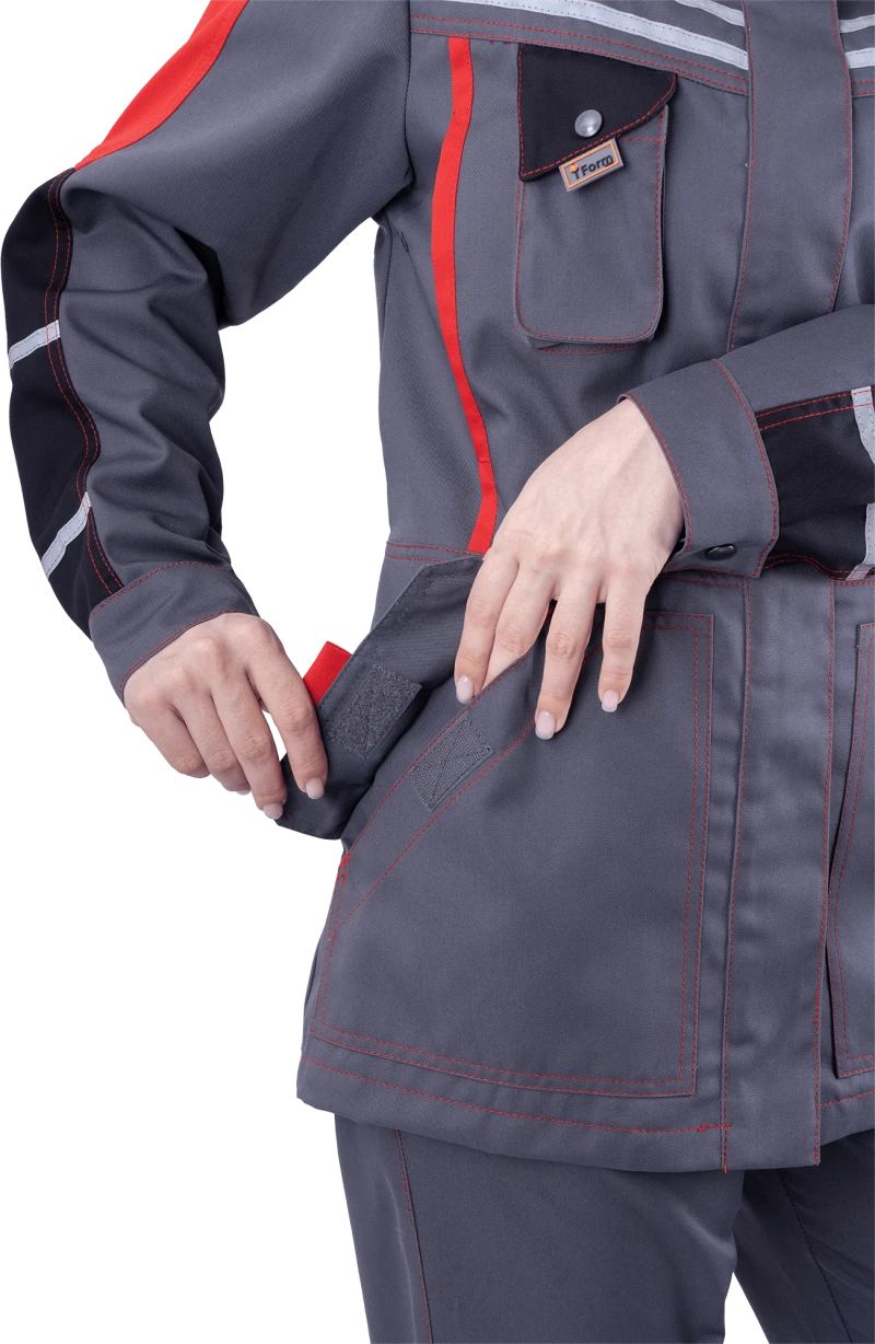 Куртка женская ХАЙ-ТЕК от механических воздействий и ОПЗ, серый/красный/черный