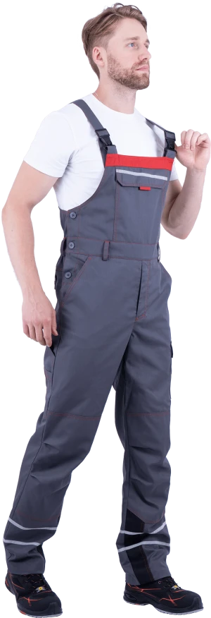 Полукомбинезон мужской ХАЙ-ТЕК от механических воздействий и ОПЗ, серый/красный/черный