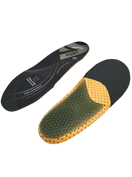 Вкладные стельки VERT изготовлены из четырех современных материалов, обладают эффектом памяти, амортизирующими свойствами и поддерживают свод стопы, снижая нагрузку на позвоночник. Они гигиеничные, антибактериальные и не теряют своих свойств при длительной носке.