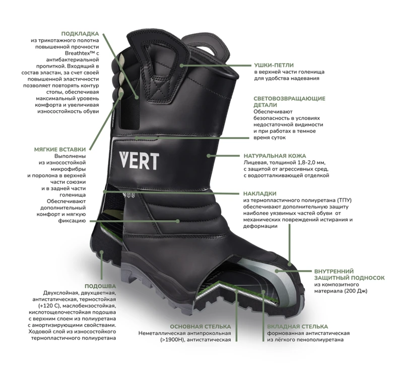 Сапоги VERT (VERT 3009) с КП и КС, кожаные ПУ/ТПУ