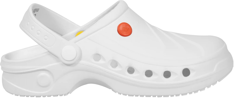 Особенности: Перекидной ремешок. Отверстия в передней части стопы выполняют функцию вентиляции. Уход за моделью можно осуществлять при помощи моющих средств, ультрафиолетом или в машинке при температуре до 40° C. ESD антистатические свойства согласно Европейской Директивы.
