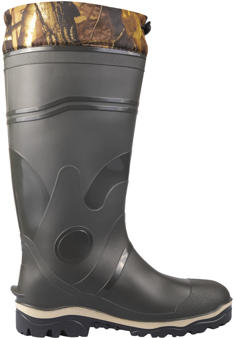 Особенности: Верх сапога комплектуется надставкой из непромокаемой ткани с затяжным шнурком. Модель обладает повышенной комфортностью по сравнению с двухцветными (двух-компонентными) моделями. Промежуточный слой подошвы (вспененный ПВХ) придает модели высокие амортизирующие, теплозащитные и антистатические свойства.