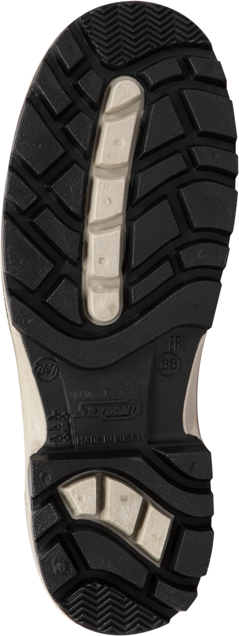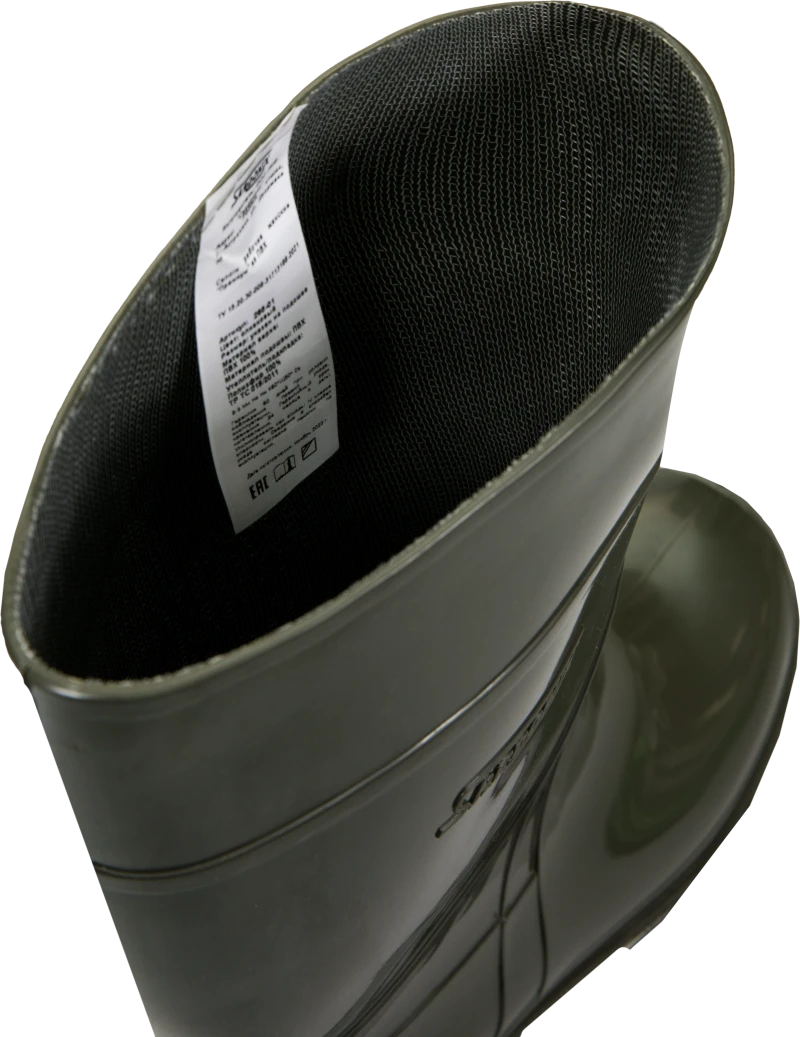 Особенности: присутствие вспененного ПВХ, образующего воздушные микросферы, способствуют теплоизоляции, уменьшает массу сапога, придает ортопедические свойства.