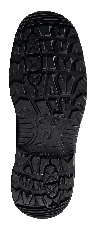 -Подошва: двухслойная (ПУ/нитрильная резина), термостойкая (до +300°С), МБС, КЩС.