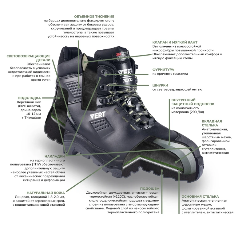 Купить Ботинки VERT (VERT 3015) с КП и КС Thinsulate® шерст.мех, кожаные ПУ/ТПУ вы можете в компании СнабТим, оформив заказ в интернет магазине, или