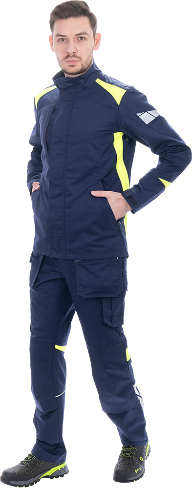 Куртка мужская ACTIVE FLEX / АКТИВ ФЛЕКС для защиты от механических воздействий и ОПЗ, т.синий-флуоресцентный желтый
