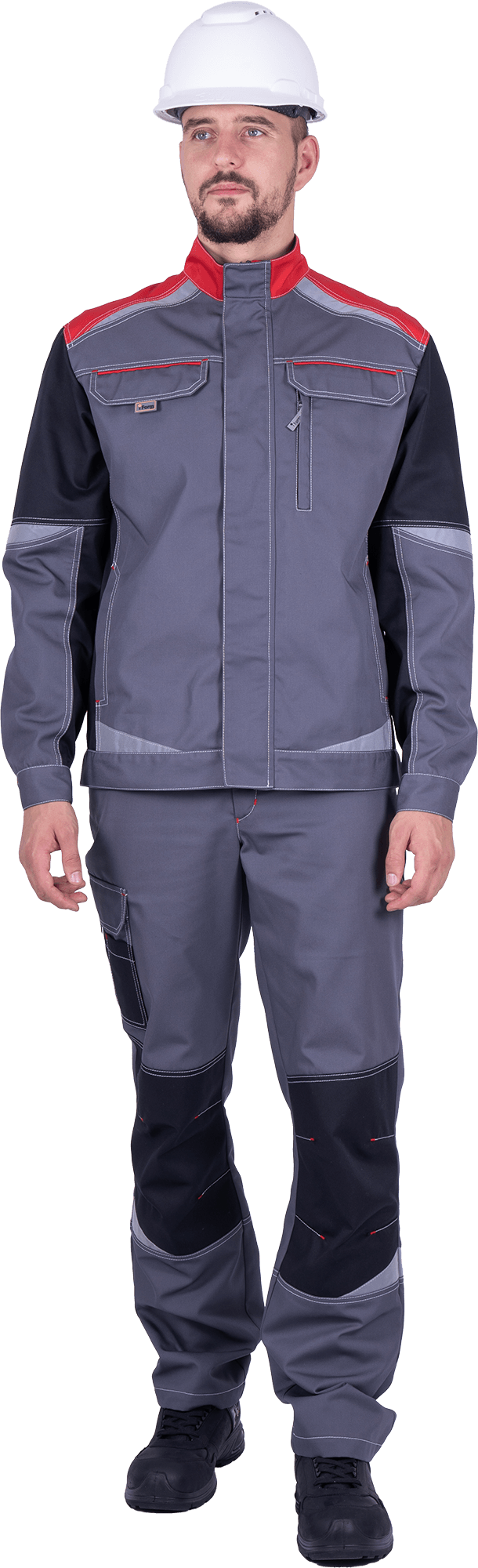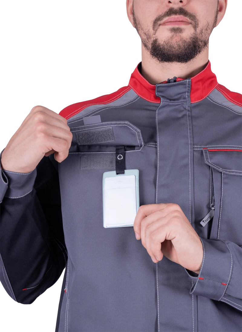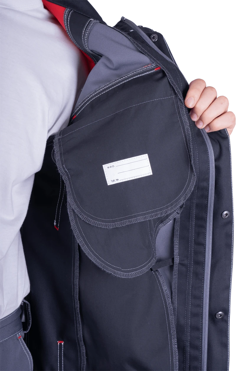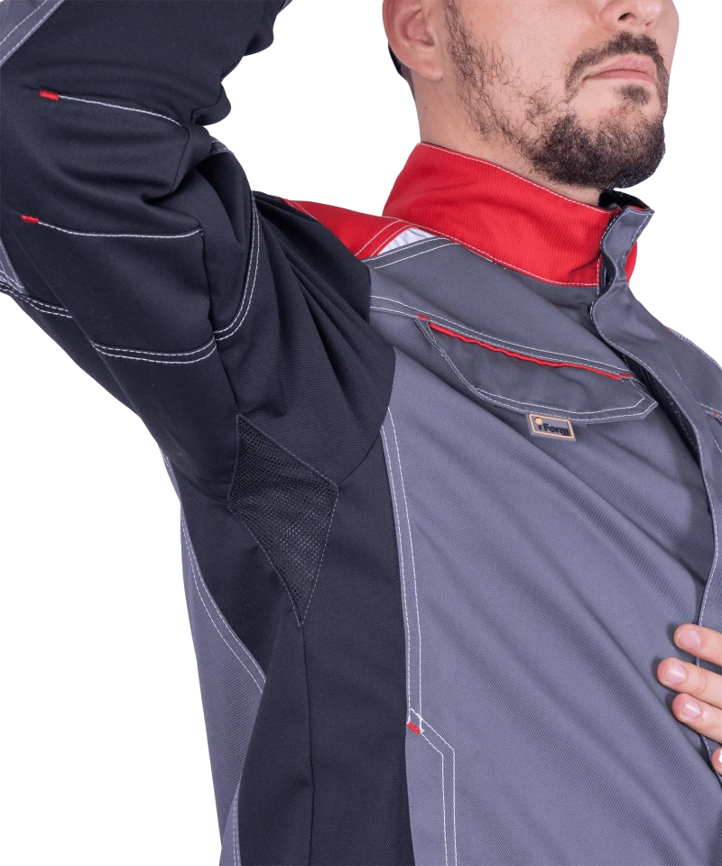 Куртка мужская ТУРБО SAFETY от механических воздействий и ОПЗ, цв. серый/чёрный/красный