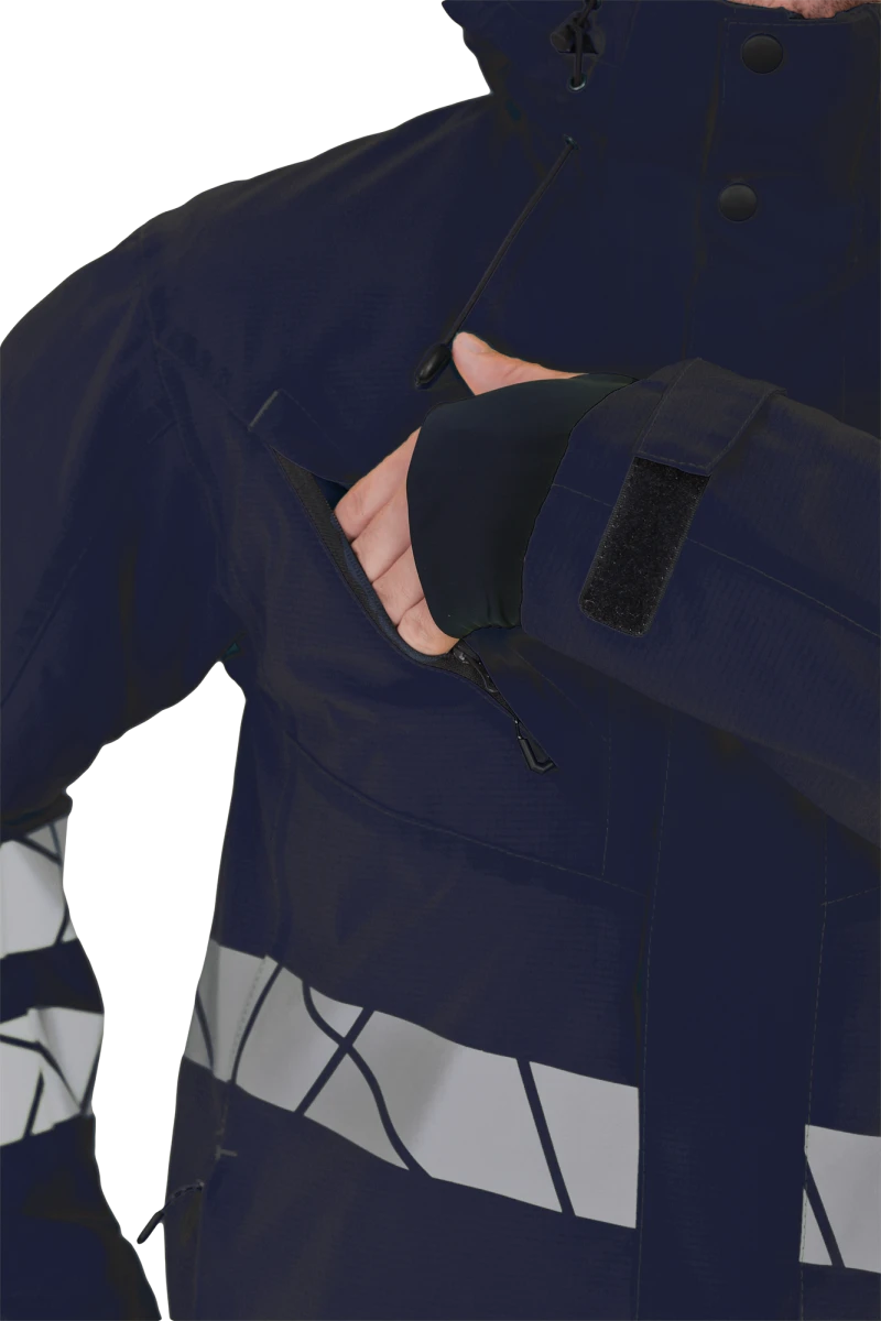 • два нагрудных кармана на молнии, в левом нагрудном кармане тесьма с кнопкой для бейджа