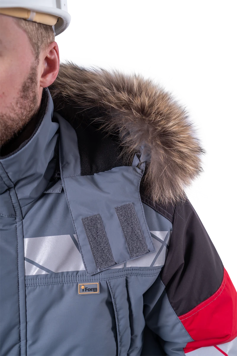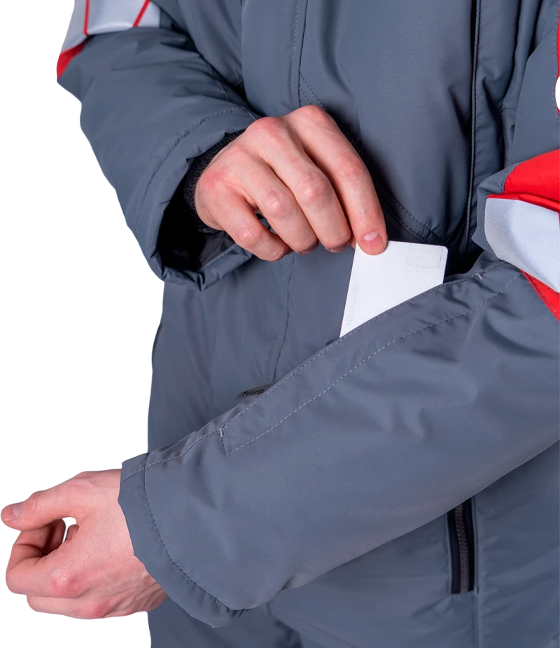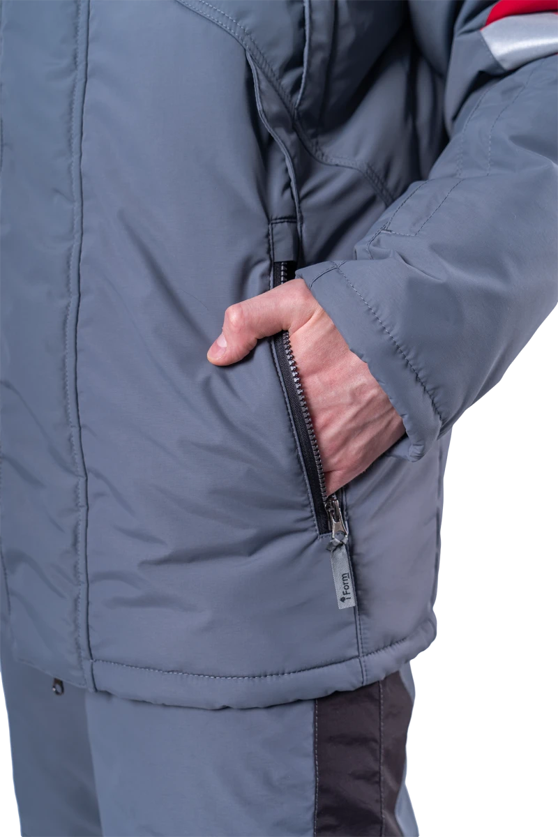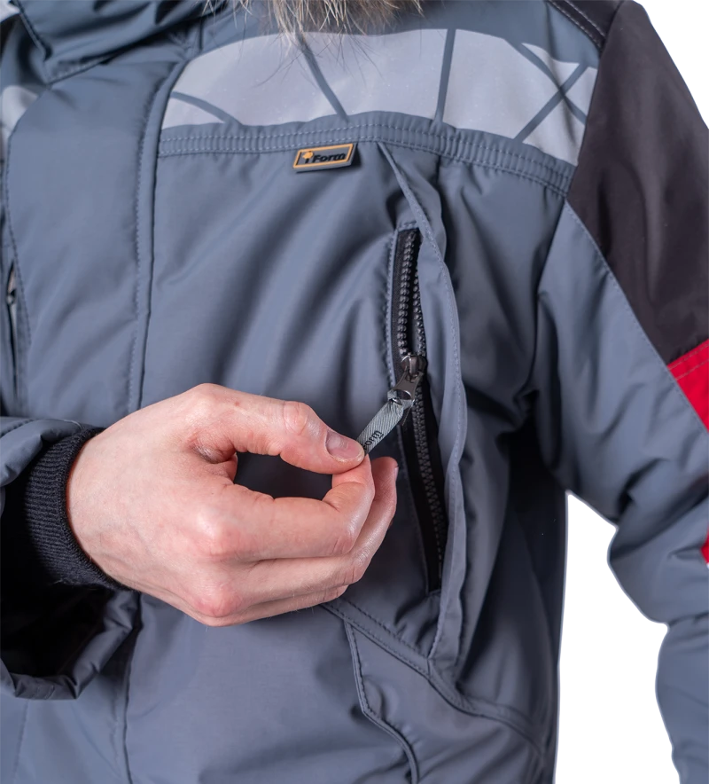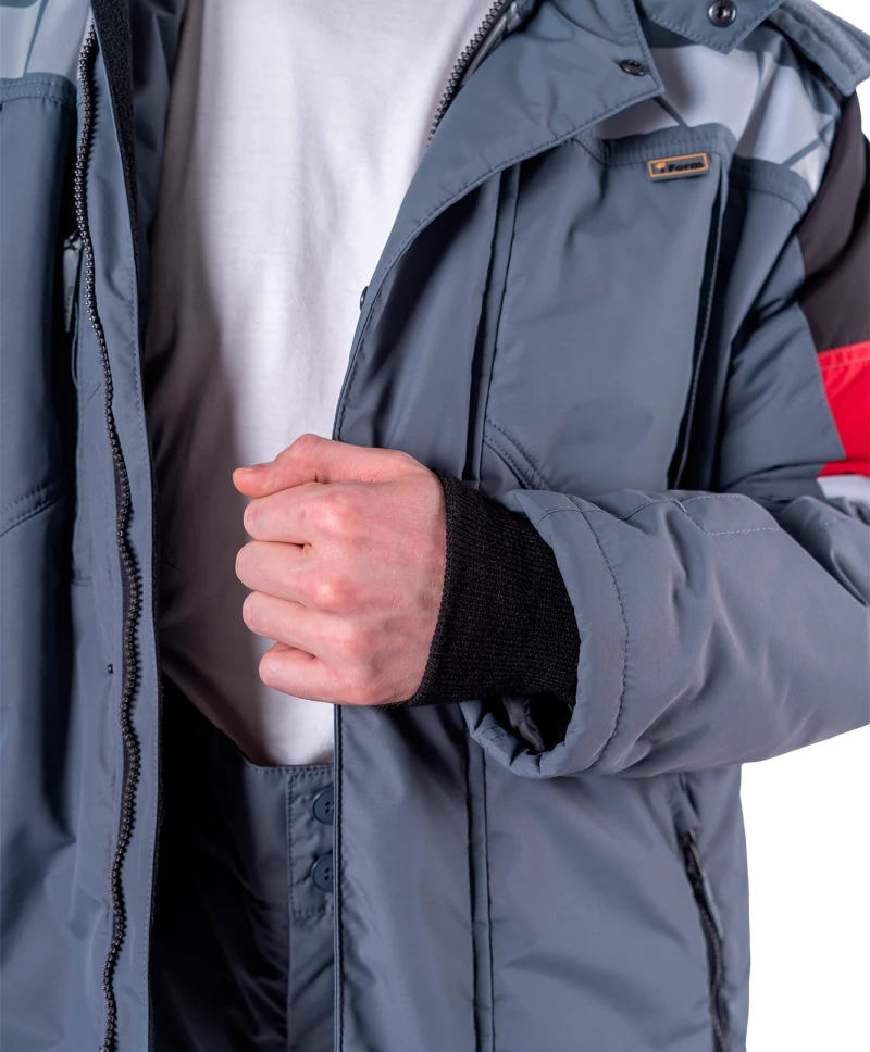 Куртка мужская ХАЙ-ТЕК SAFETY от пониженных температур воздуха и ветра, механических воздействий и ОПЗ, серый/красный/черный