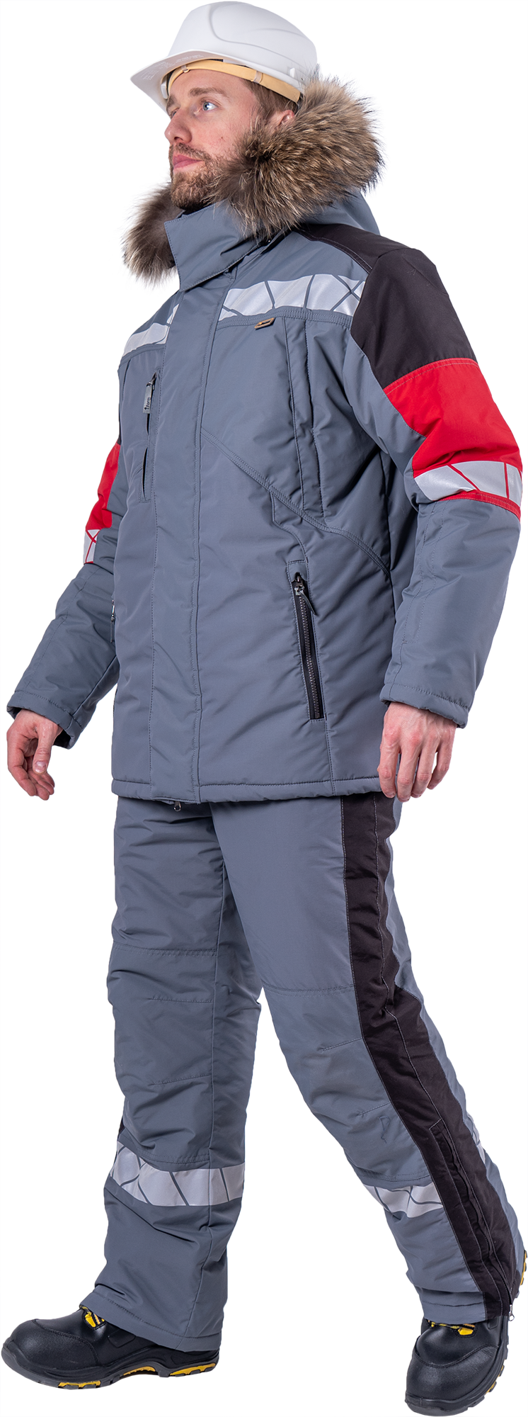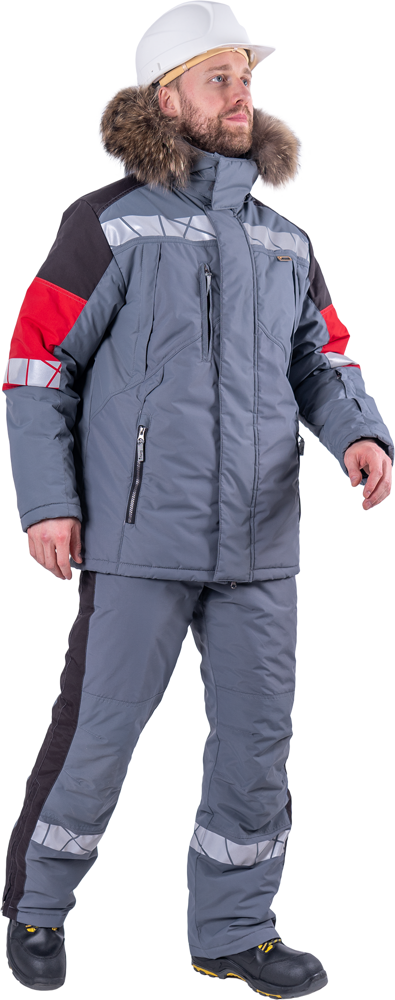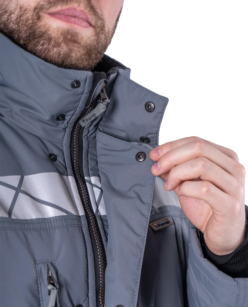 Куртка мужская ХАЙ-ТЕК SAFETY от пониженных температур воздуха и ветра, механических воздействий и ОПЗ, серый/красный/черный