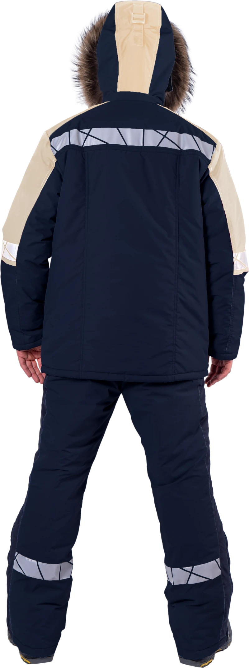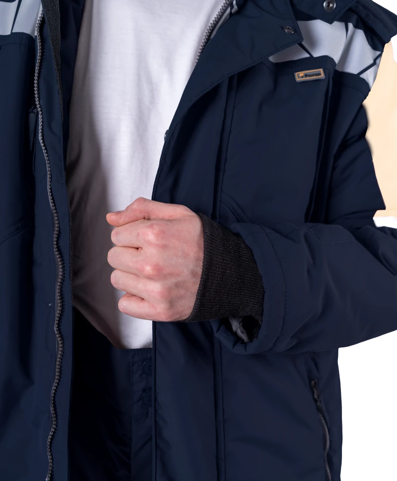 Куртка мужская ХАЙ-ТЕК SAFETY от пониженных температур воздуха и ветра, механических воздействий и ОПЗ, синий/бежевый