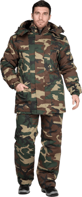 Костюм ТУРИСТ мужской от пониженных температур воздуха, механических воздействий и ОПЗ (куртка, брюки), цвет КМФ зелёный
