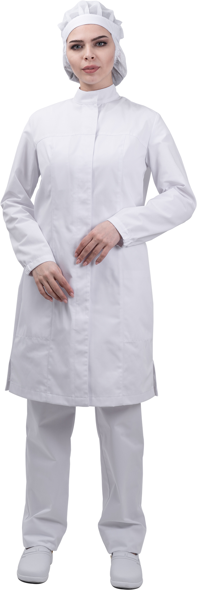 Халат женский АПРЕЛИЯ ХАССП от механических воздействий и ОПЗ, белый