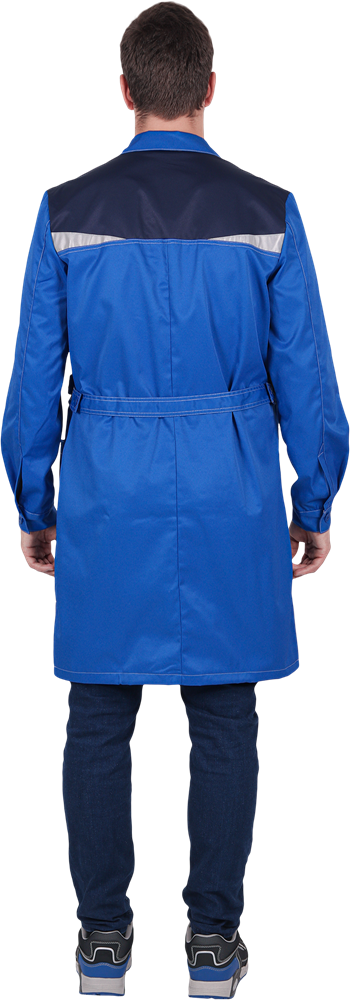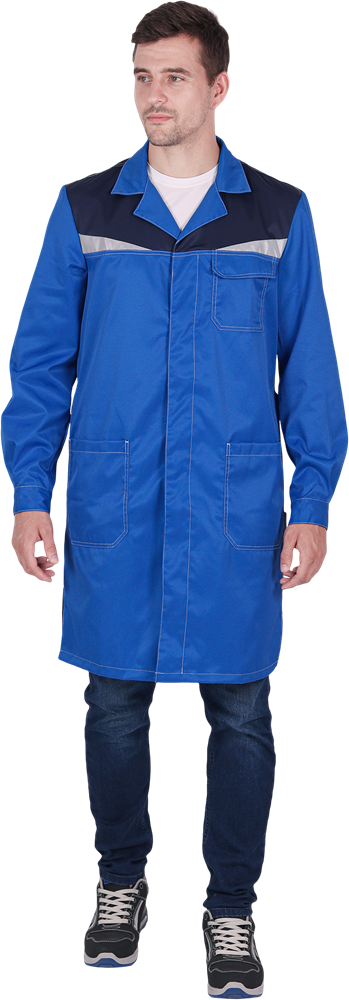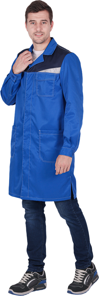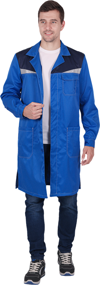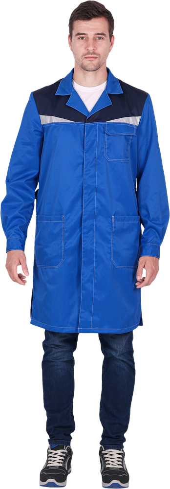 Халат мужской КМ-10 ЛЮКС от механических воздействий и ОПЗ, василёк/темно-синий