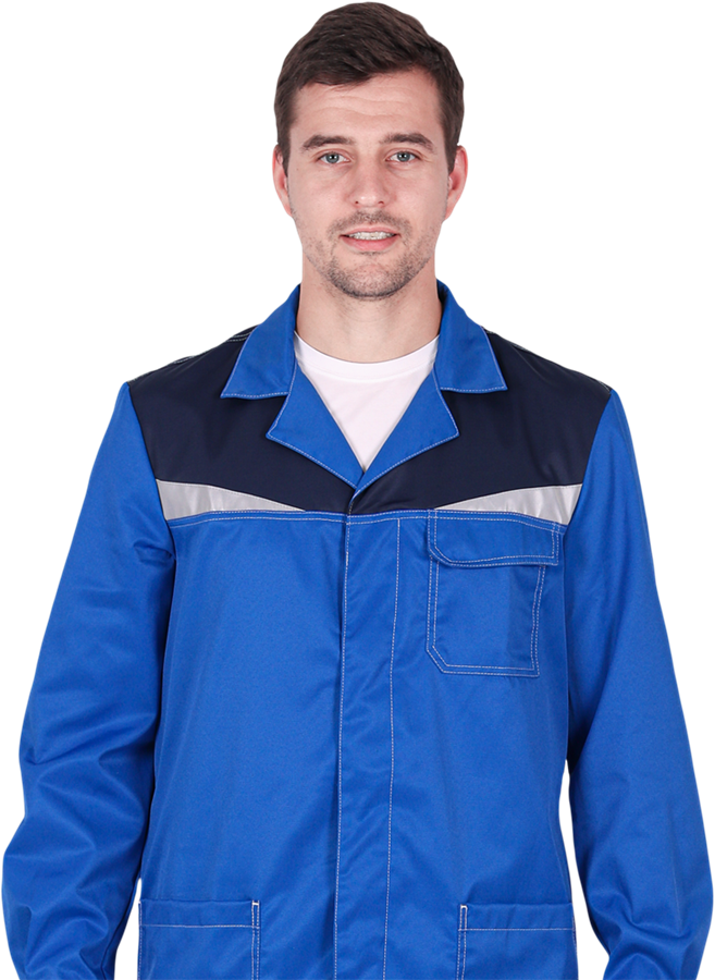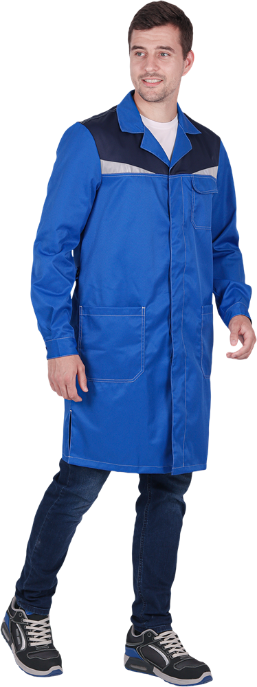 Купить Халат мужской КМ-10 ЛЮКС от механических воздействий и ОПЗ, василёк/темно-синий вы можете в компании СнабТим, оформив заказ в интернет магазине, или