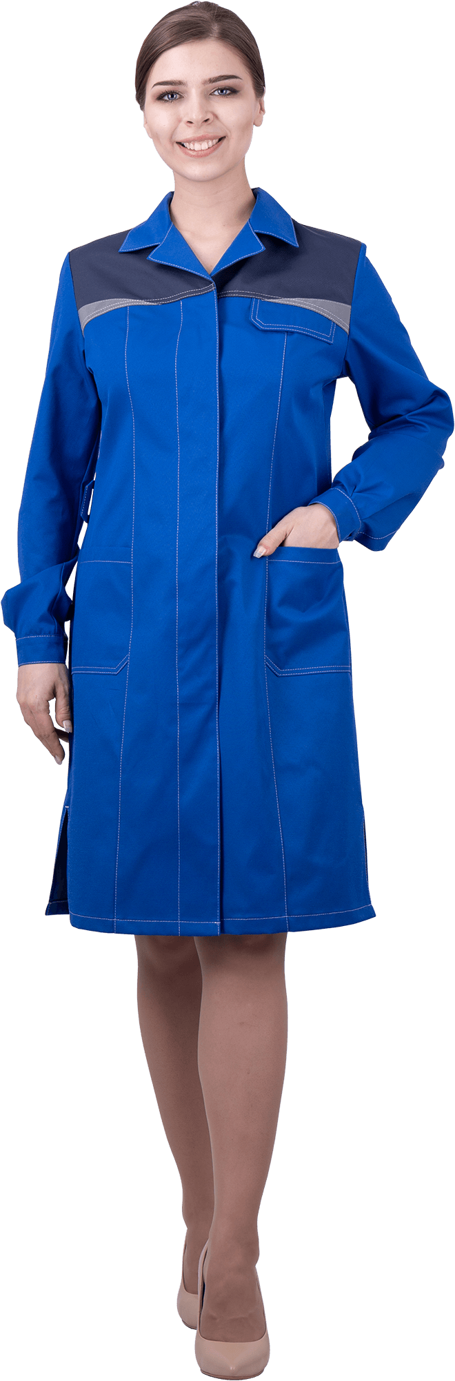 Купить Халат женский КМ-10 ЛЮКС от механических воздействий и ОПЗ, василёк/темно-синий вы можете в компании СнабТим, оформив заказ в интернет магазине, или