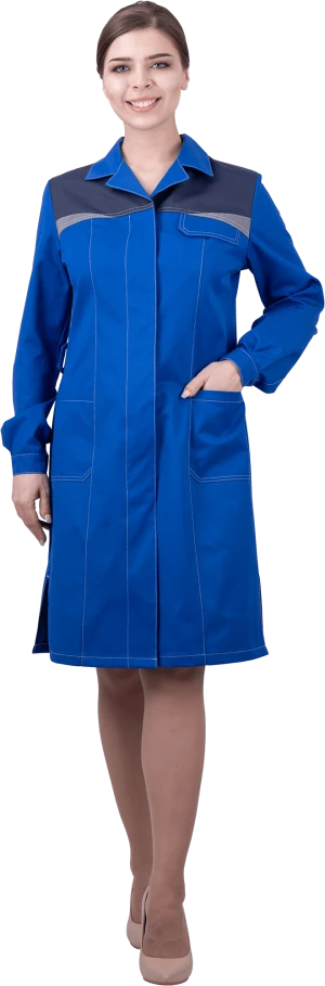 Халат женский КМ-10 ЛЮКС от механических воздействий и ОПЗ, василёк/темно-синий