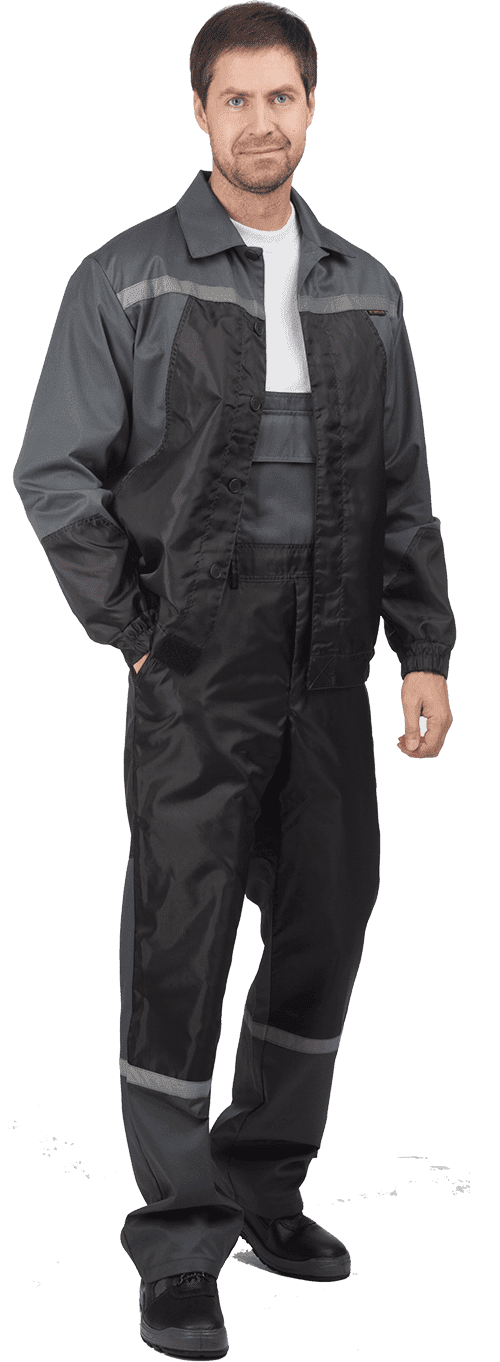 Костюм АВТОМОЙЩИК летний, серый-чёрный (Куртка+полукомбинезон)