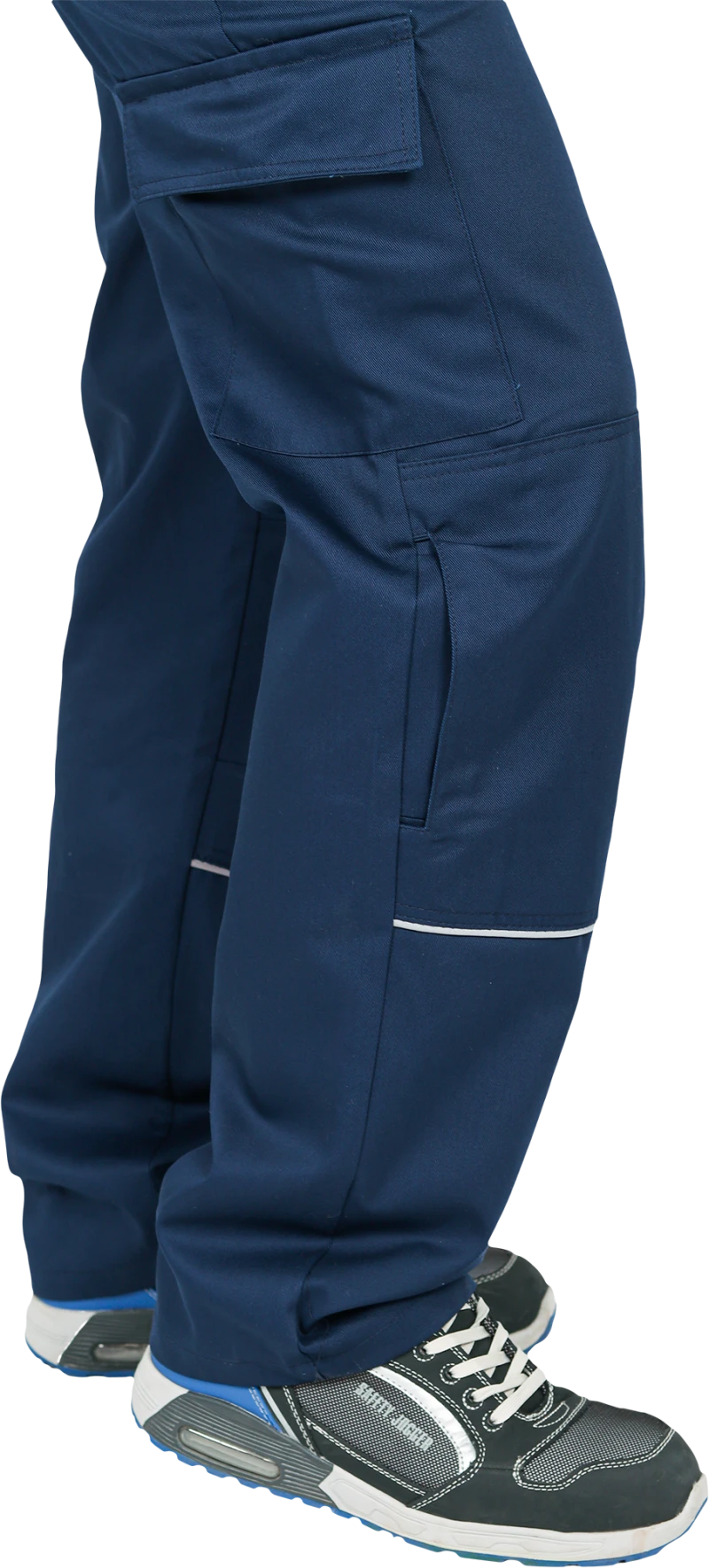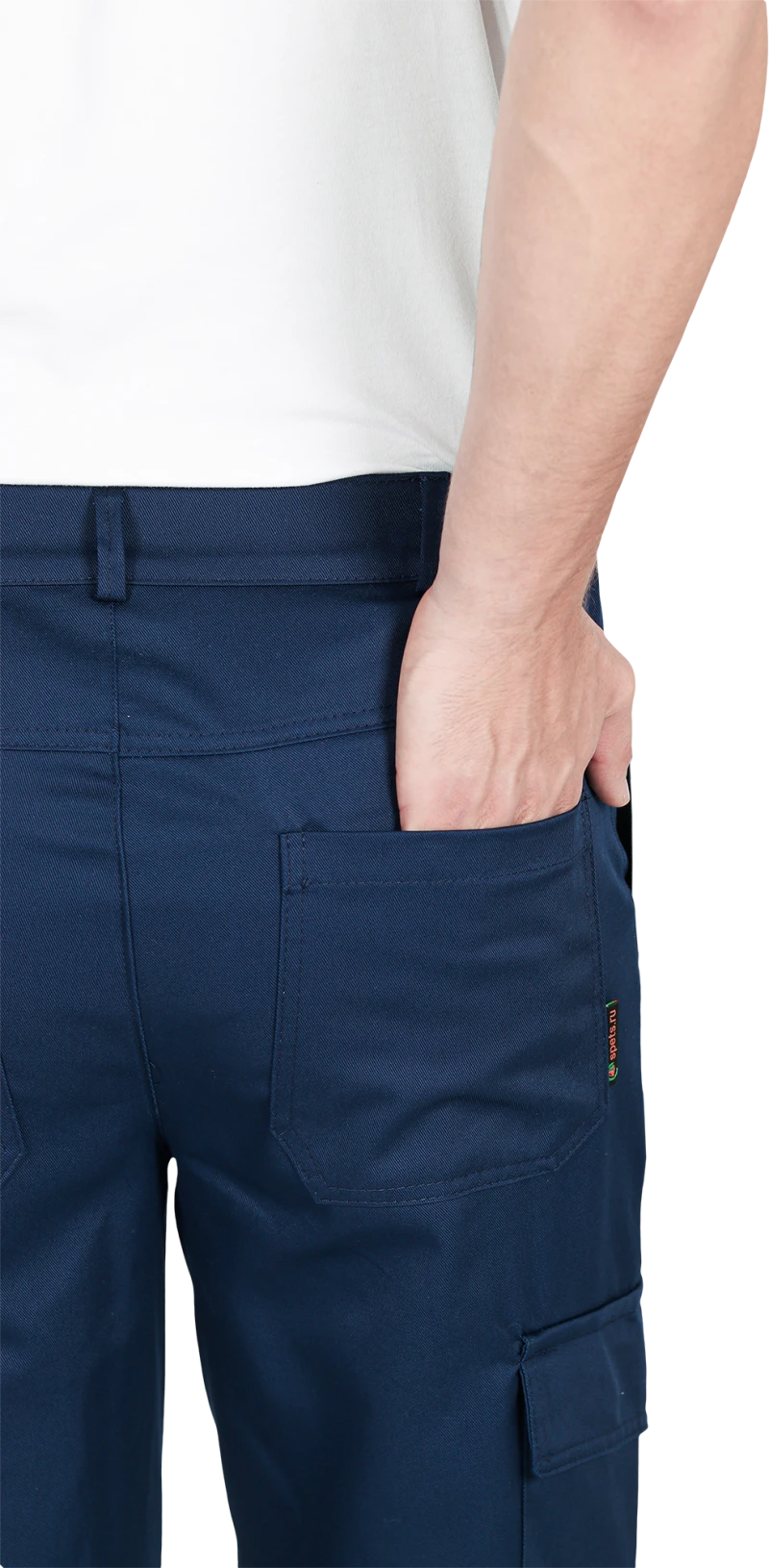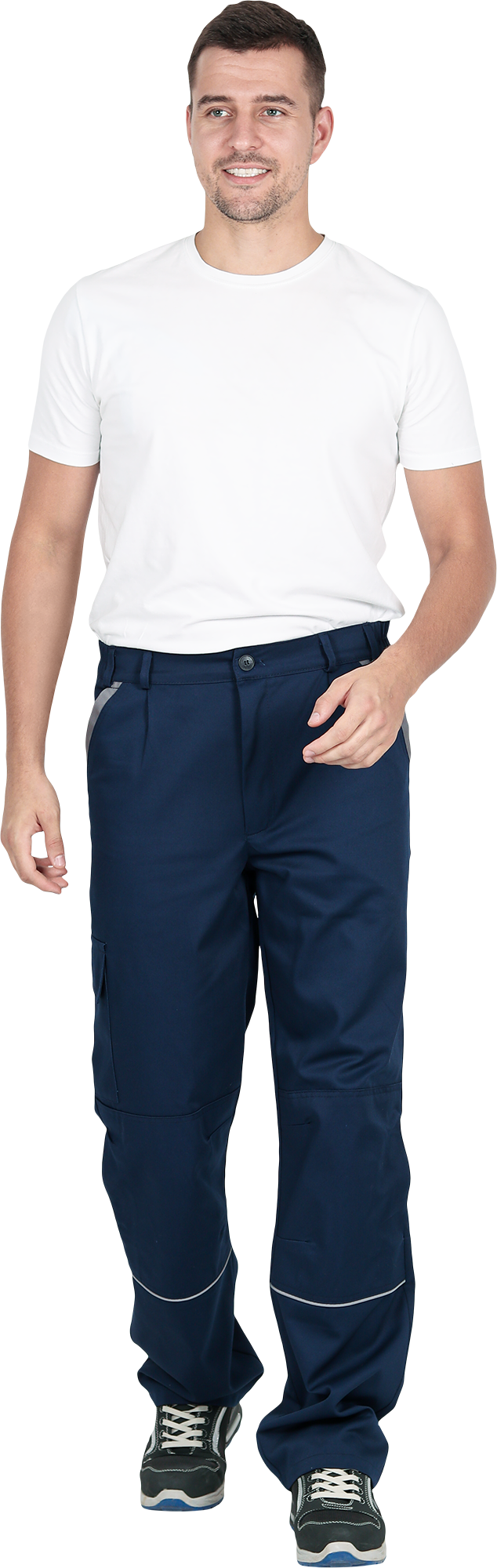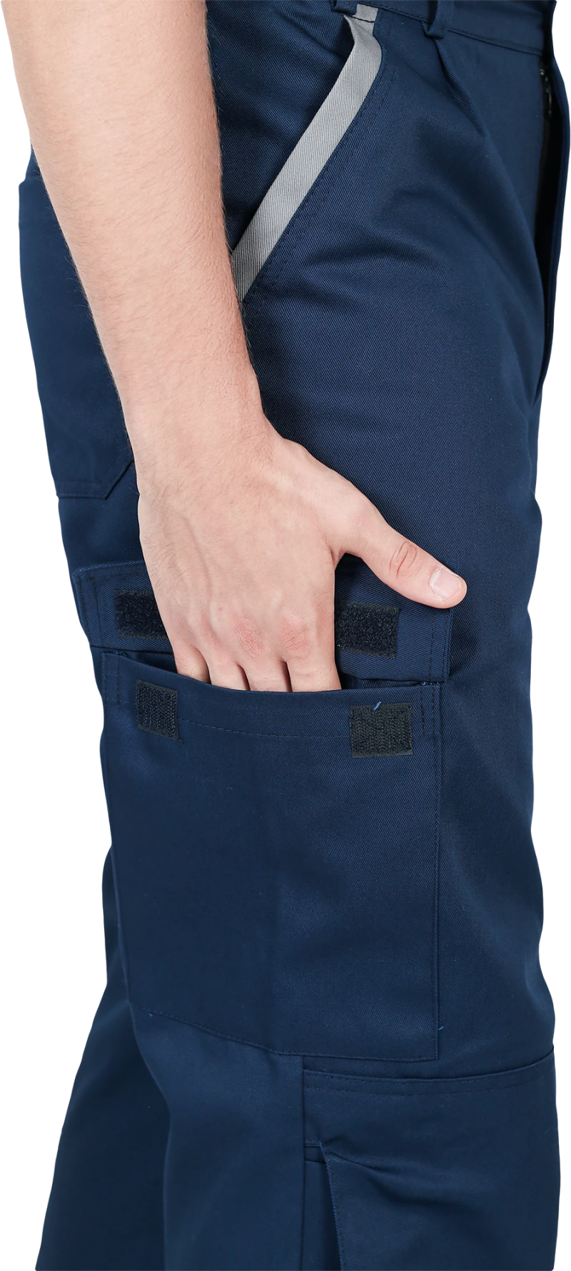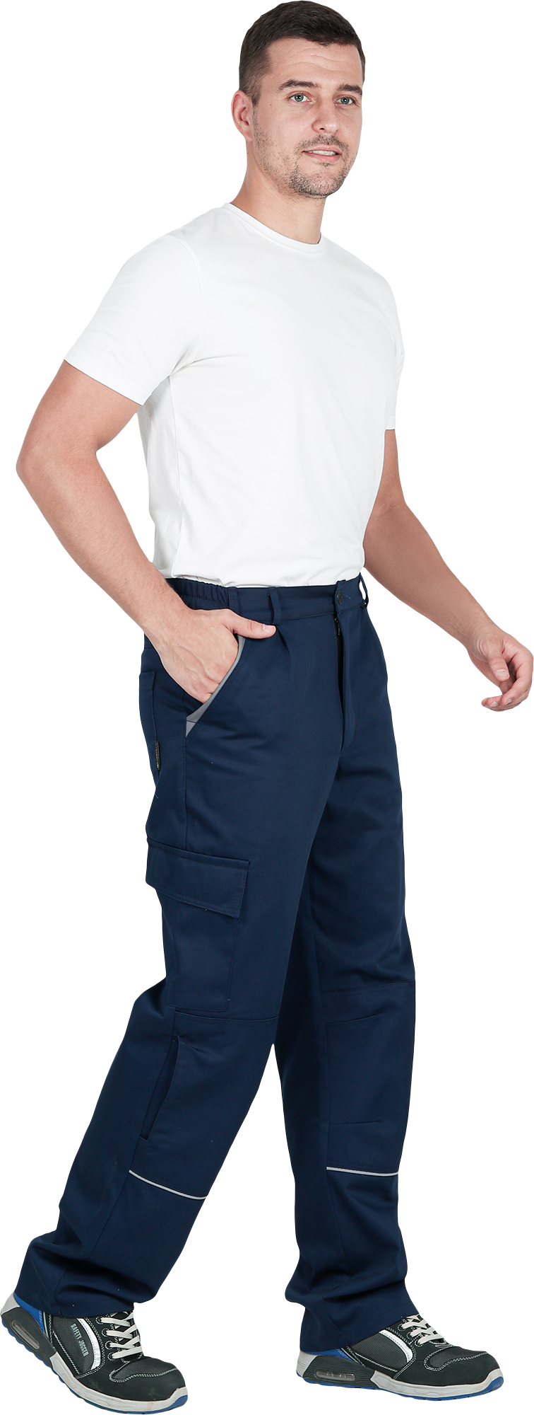 Костюм состоит из куртки и брюк.Со световозвращающим кантом по нижнему краю кокеток полочек и спинки,по переднему и локтевому швам рукавов, по нижнему краю наколенников.Куртка:• прямого силуэта с притачным поясом• спинка и полочки с кокетками• центральная застёжка на молнию• ветрозащитный клапан с текстильной застёжкой• отложной воротник• нагрудные накладные карманы с клапанами с текстильной застёжкой• нижние накладные карманы с наклонным входом• рукава трёхшовные с манжетами• манжета рукава частично с эластичной лентой• ширина куртки внизу регулируется патами на поясеБрюки:• пояс частично с эластичной лентой на уровне боковых швов• застёжкой-гульф на молнию• наколенники с кармано