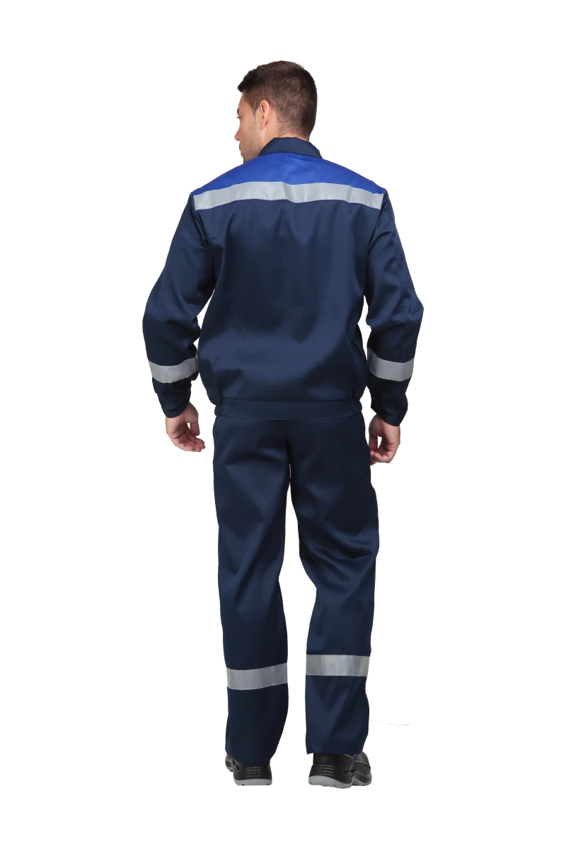 З – защита от общих производственных загрязненийГОСТ 12.4.280-2014ТР ТС 019/2011Костюм состоит из куртки и полукомбинезона.В костюме используется световозвращающая лента (СВП) 50 мм.Куртка:• центральная застёжка на пуговицы• с кокетками на спинке и полочках• четыре кармана для инструментов• притачной пояс стянут по бокам эластичной тесьмой• рукава втачные длинные, с манжетами, застёгивающимися на пуговицыПолукомбинезон: • застёжка — гульф и застёжка в боковом шве на петли и пуговицы• бретели с эластичной лентой и с застёжкой на фастексы • накладные карманы• отрезной нагрудник с накладным карманом под инструменты