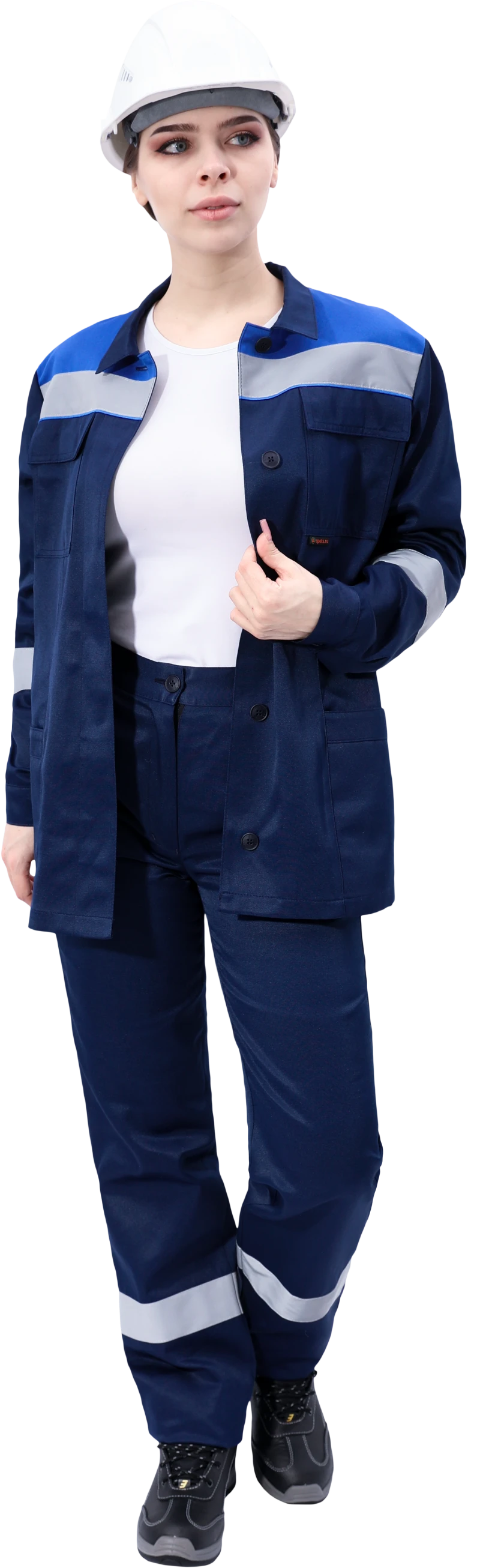 Костюм состоит из куртки и брюк. В костюме используется световозвращающая полоса 50 мм.