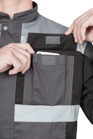 Костюм мужской ГРАНИТ НЕО от механических воздействий и ОПЗ (куртка, полукомбинезон), серый/черный
