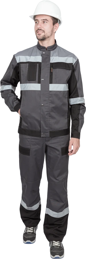 Костюм мужской ГРАНИТ НЕО от механических воздействий и ОПЗ (куртка, полукомбинезон), серый/черный