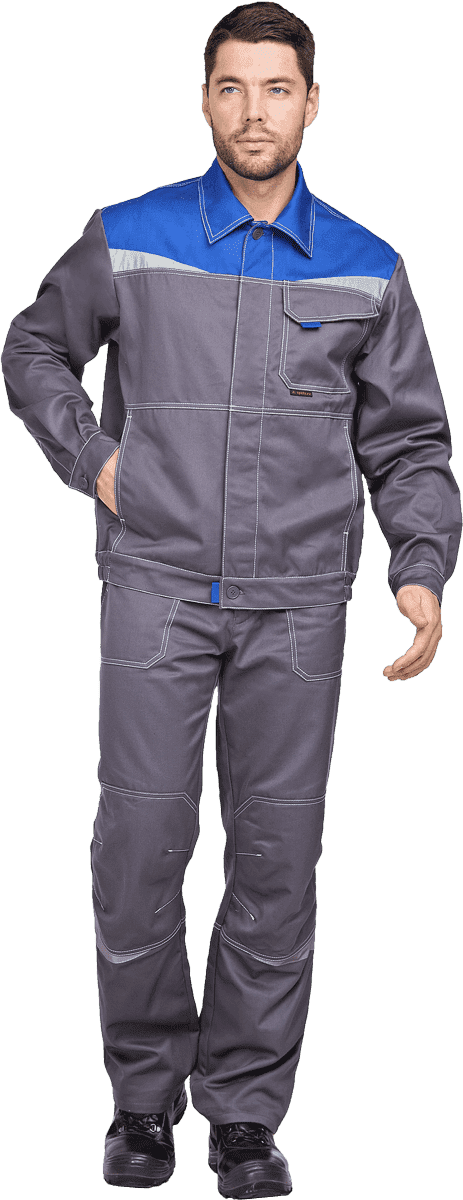 Костюм мужской КАСКАД от механических воздействий и ОПЗ (куртка, брюки), серый/василек