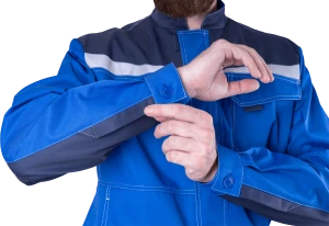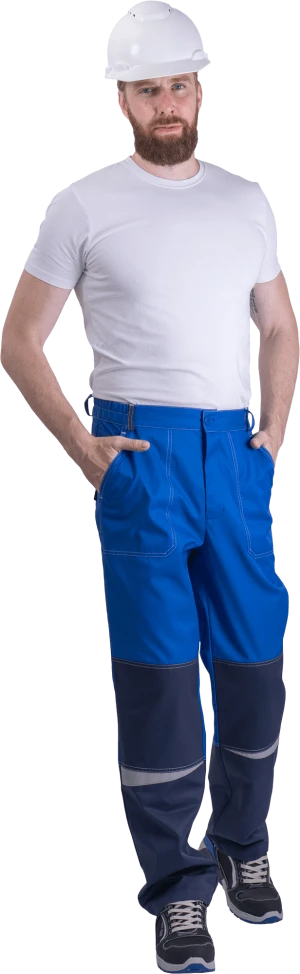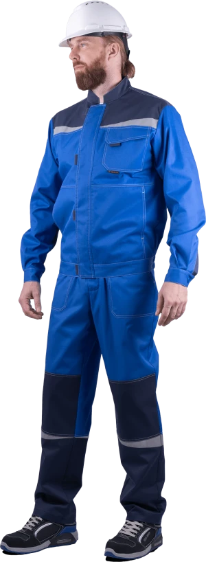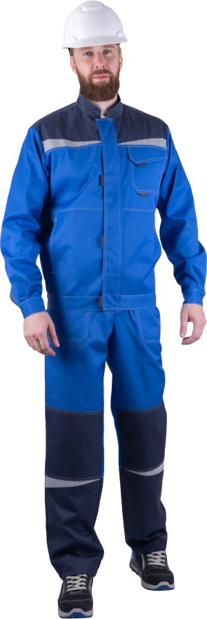 Костюм мужской КМ-10 ЛЮКС от механических воздействий и ОПЗ (куртка, брюки), василек/темно-синий