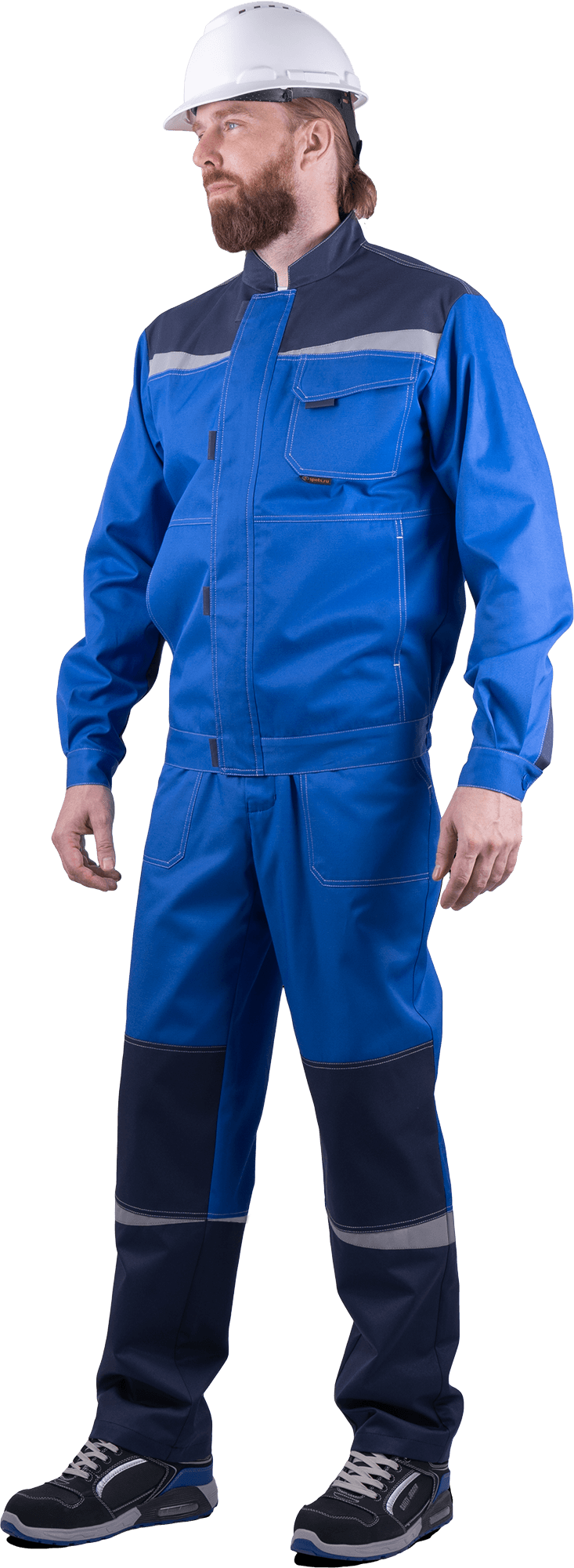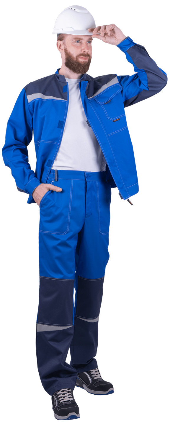 Костюм мужской КМ-10 ЛЮКС от механических воздействий и ОПЗ (куртка, брюки), василек/темно-синий