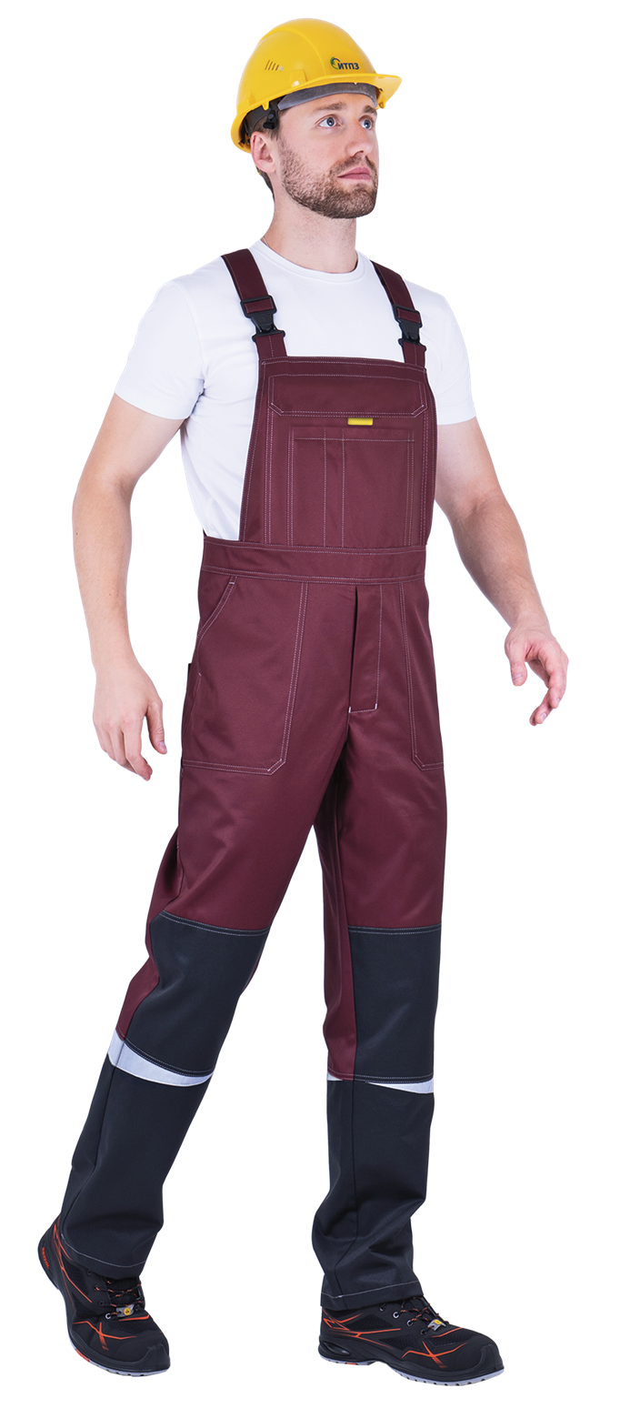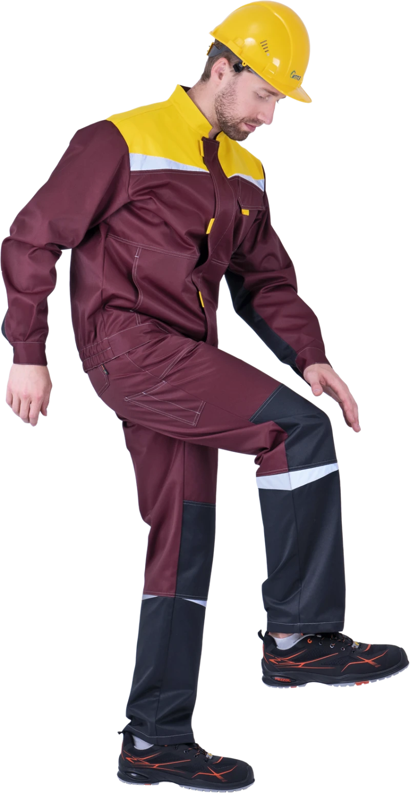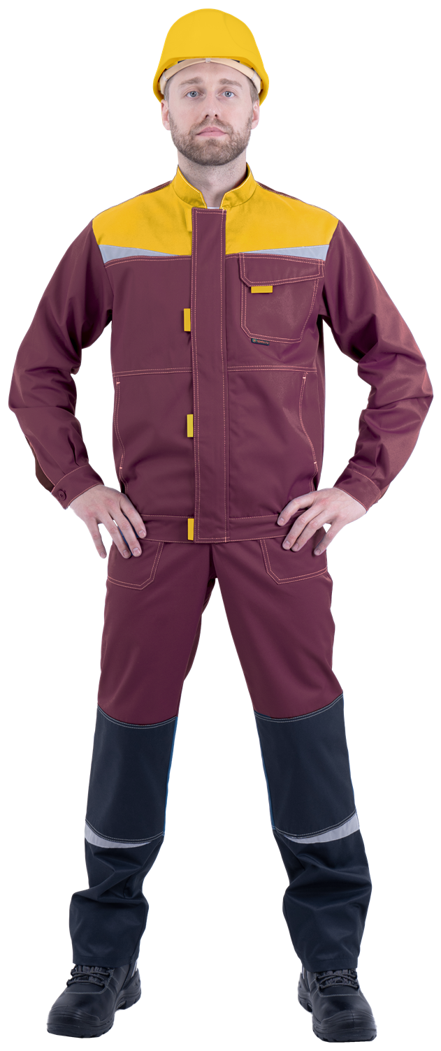 Костюм мужской КМ-10 ЛЮКС от механических воздействий и ОПЗ (куртка, полукомбинезон), бордовый/жёлтый/чёрный