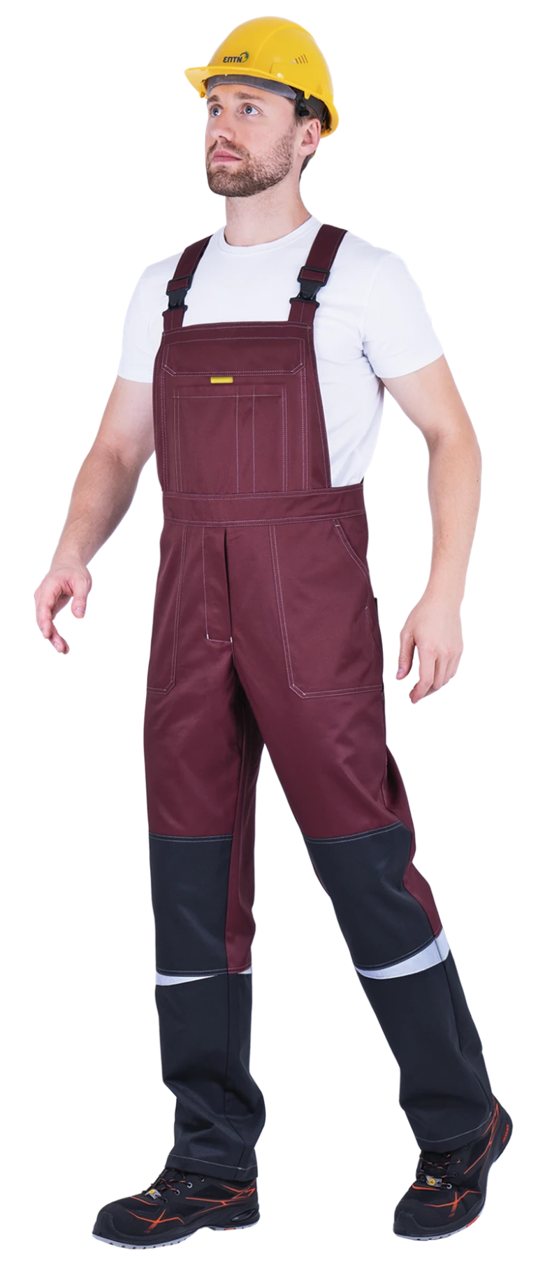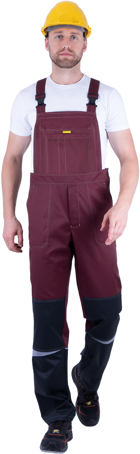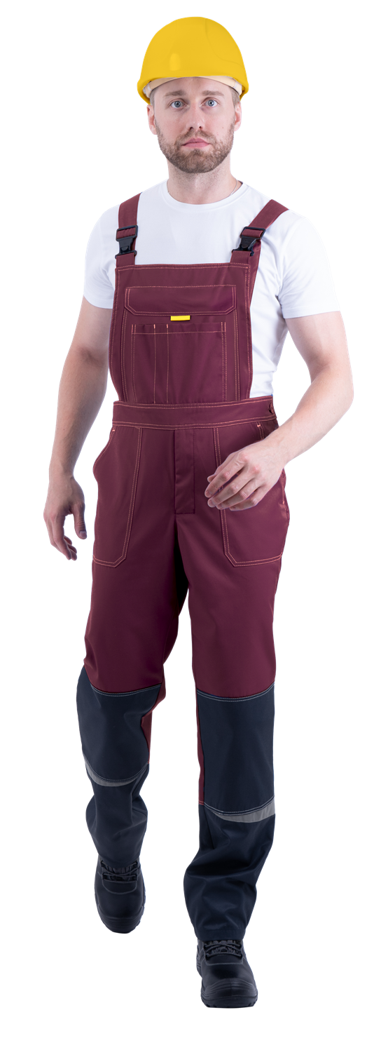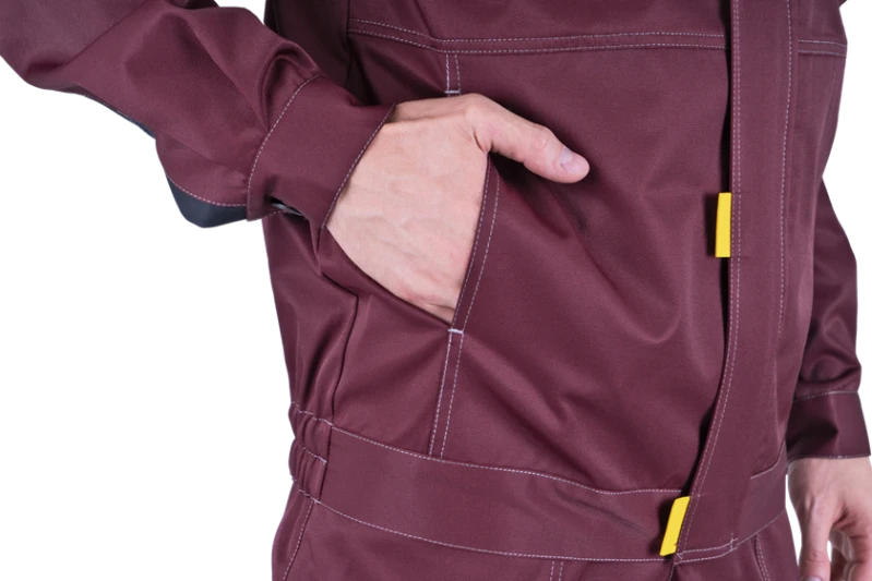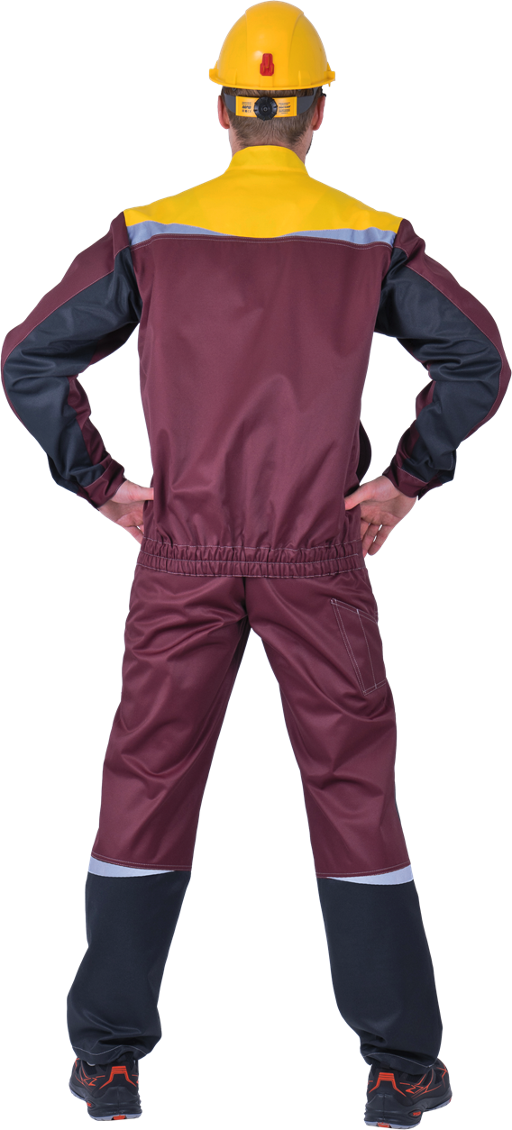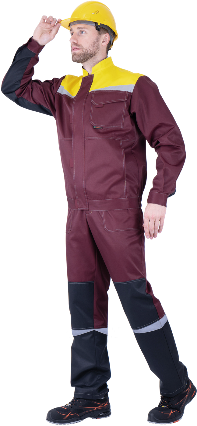 Костюм мужской КМ-10 ЛЮКС от механических воздействий и ОПЗ (куртка, полукомбинезон), бордовый/жёлтый/чёрный