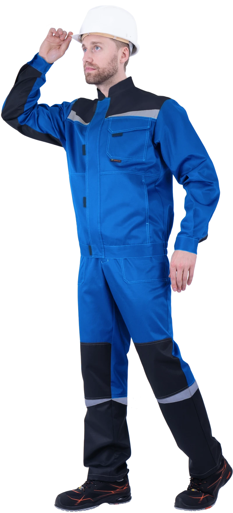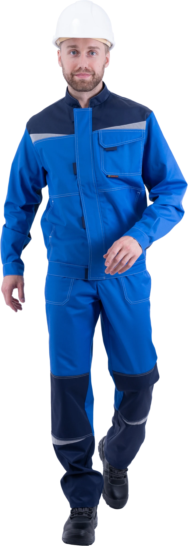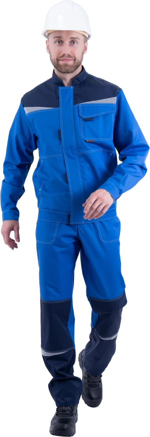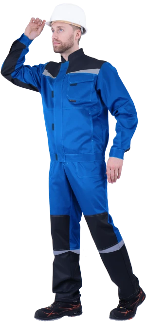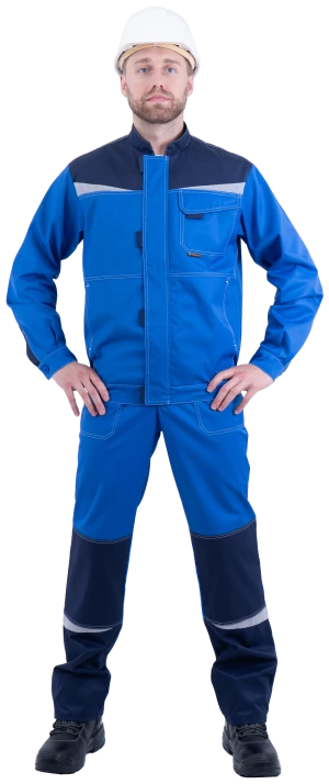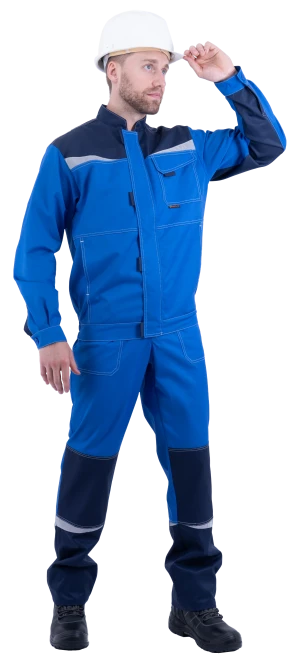 Костюм мужской КМ-10 ЛЮКС от механических воздействий и ОПЗ (куртка, полукомбинезон), василек/темно-синий