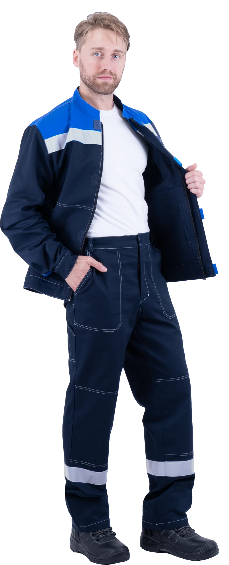 Костюм мужской РАЦИОНАЛИЗАТОР от механических воздействий и ОПЗ (куртка, брюки), темно-синий/василёк