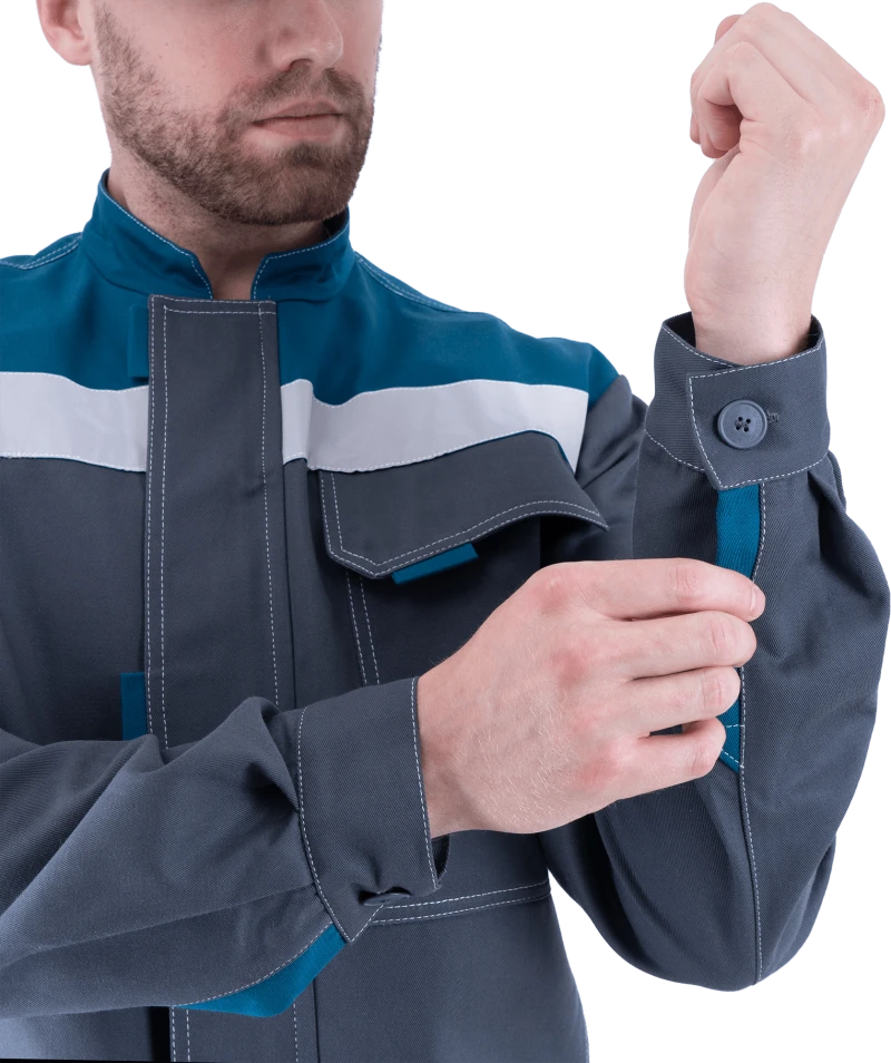 Костюм мужской РАЦИОНАЛИЗАТОР от механических воздействий и ОПЗ (куртка, полукомбинезон), серый/бирюза