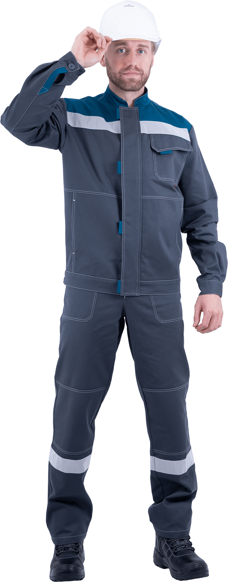 Костюм мужской РАЦИОНАЛИЗАТОР от механических воздействий и ОПЗ (куртка, полукомбинезон), серый/бирюза