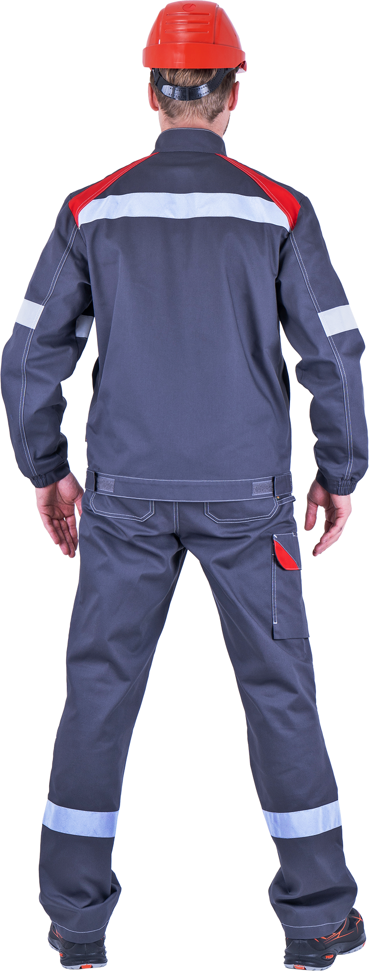 Костюм мужской СТАРАТЕЛЬ от механических воздействий и ОПЗ (куртка, брюки), серый/красный