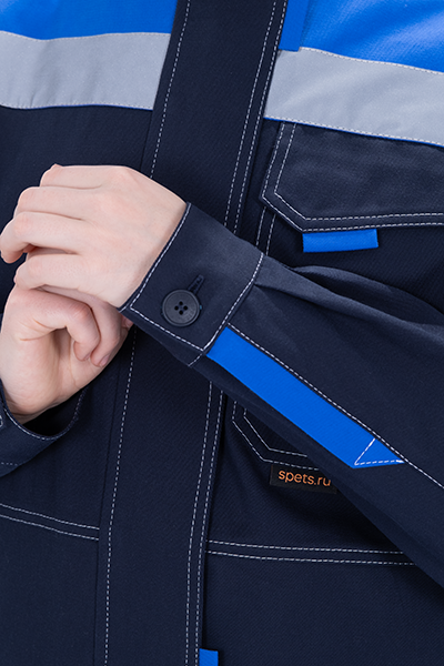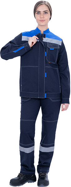 Костюм состоит из куртки и брюк. В костюме используется световозвращающая полоса 50 мм.