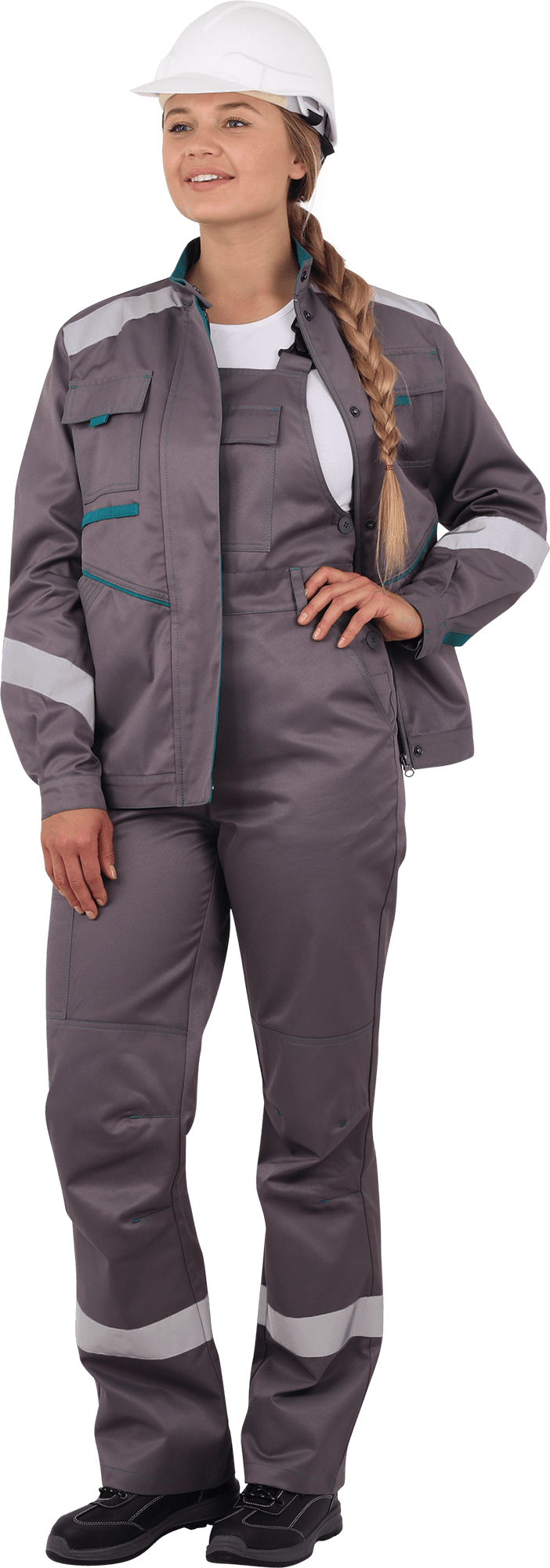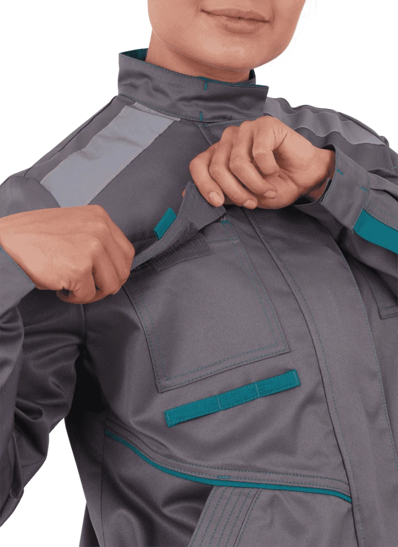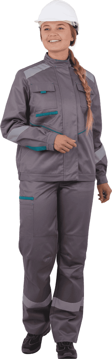 Костюм женский ГАЛАКТИКА от механических воздействий и ОПЗ (куртка, полукомбинезон), серый/бирюза