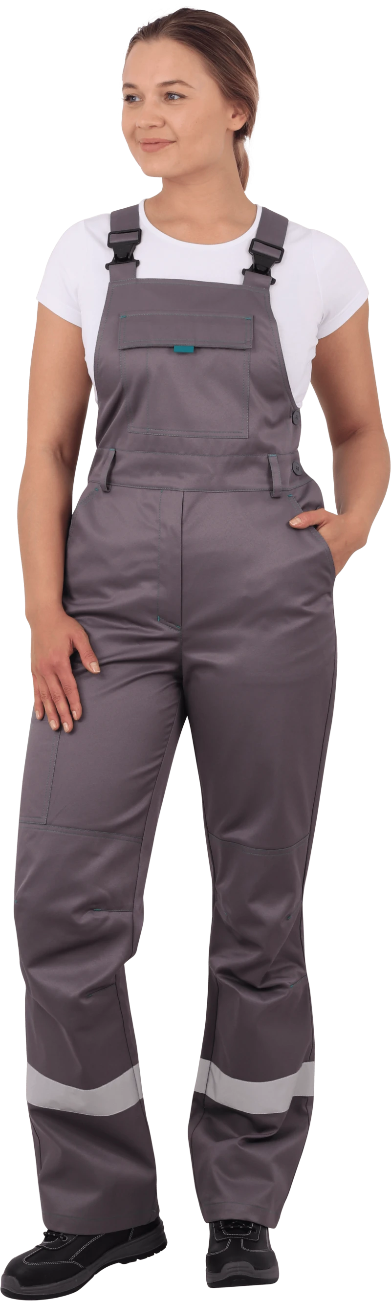 Купить Костюм женский ГАЛАКТИКА от механических воздействий и ОПЗ (куртка, полукомбинезон), серый/бирюза вы можете в компании СнабТим, оформив заказ в интернет магазине, или