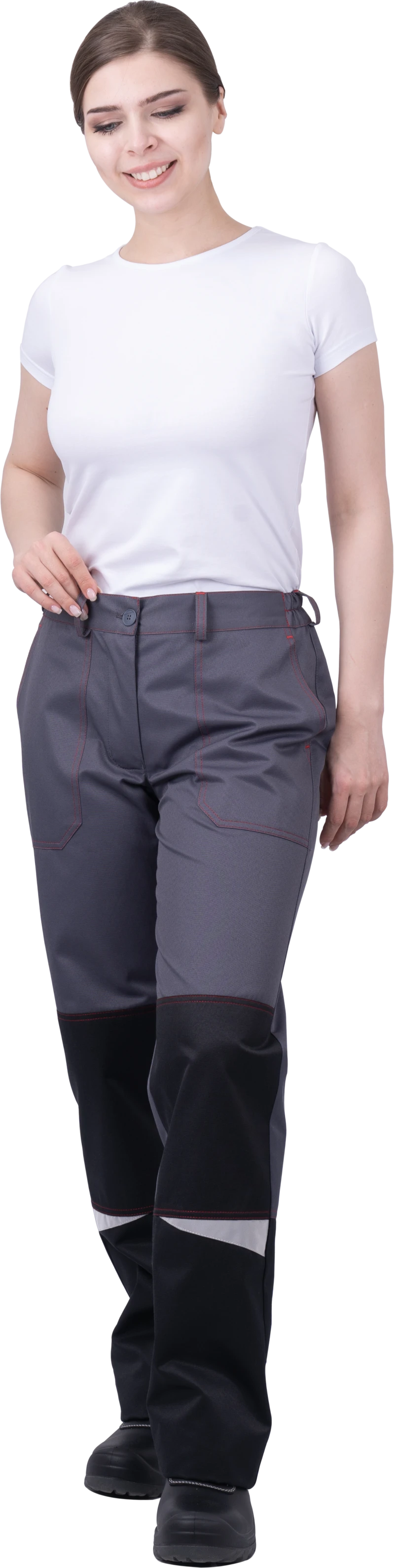 Купить Костюм женский КМ-10 ЛЮКС от механических воздействий и ОПЗ (куртка, брюки), серый/красный/черный вы можете в компании СнабТим, оформив заказ в интернет магазине, или