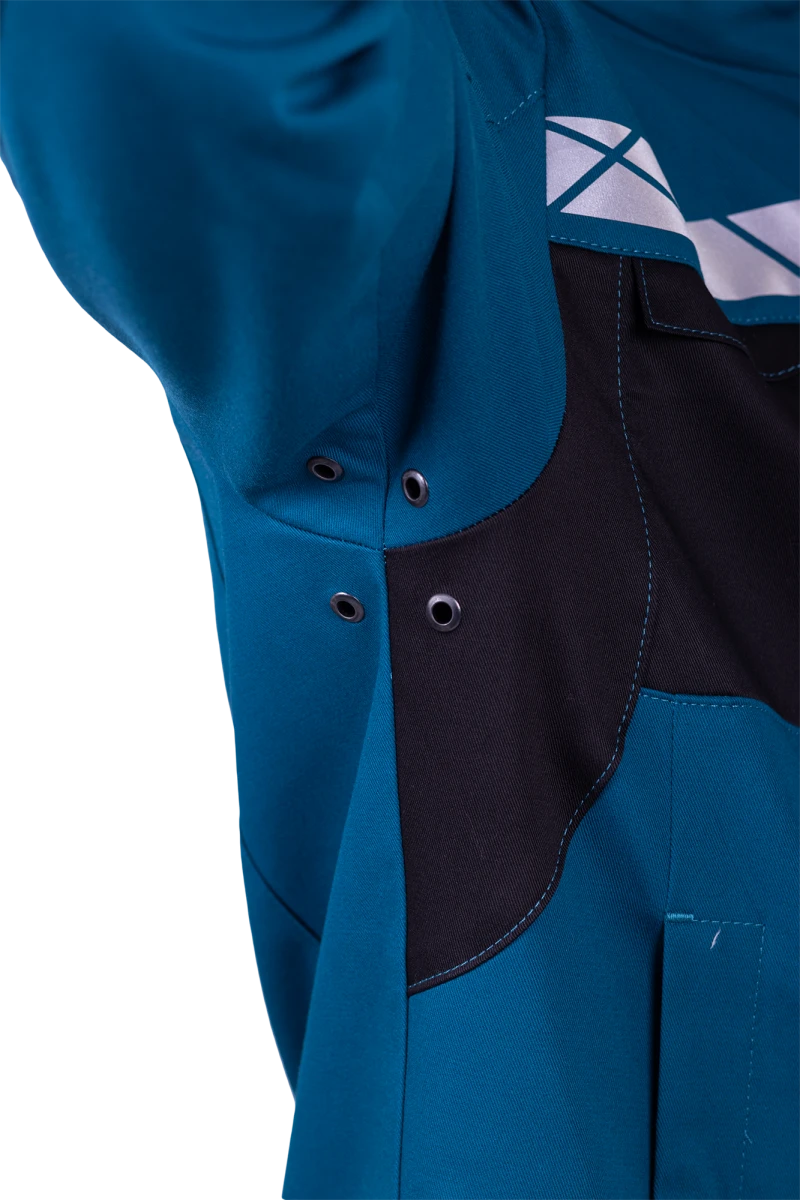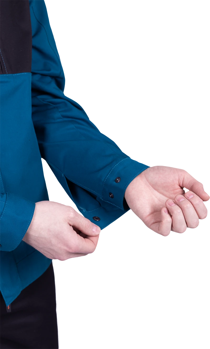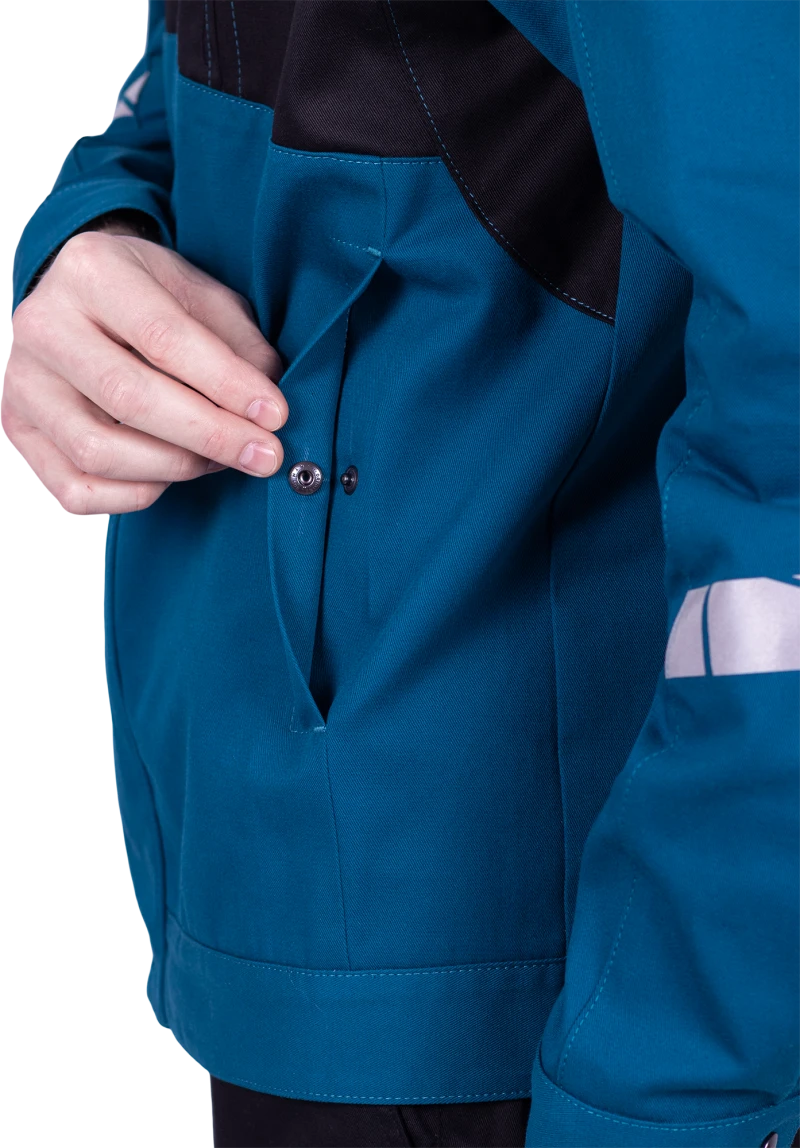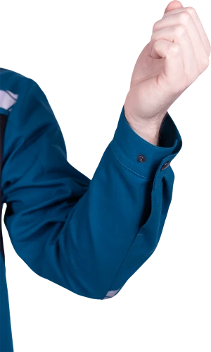 • рукава с локтевыми швами, с манжетами с застёжкой на кнопку с возможностью регулирования объема