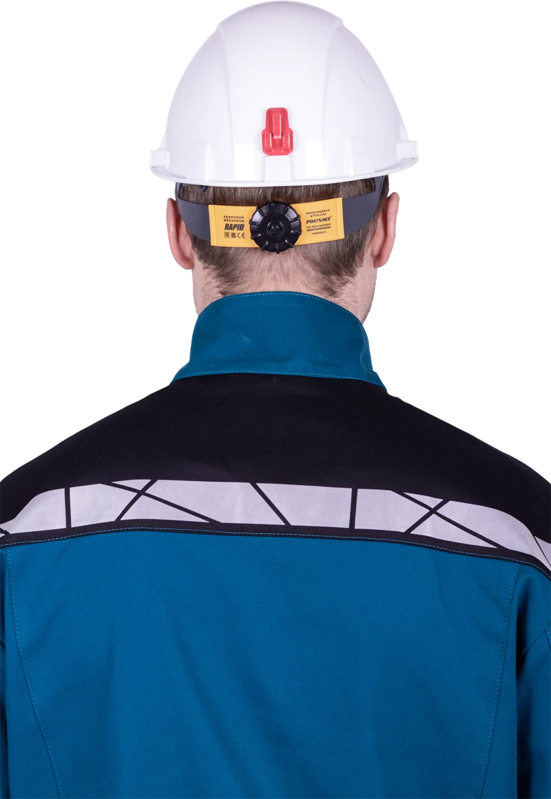 • термоклеевая световозвращающая полоса шириной 30 мм располагается по кокеткам полочек и спинки, низу центральной части рукавов