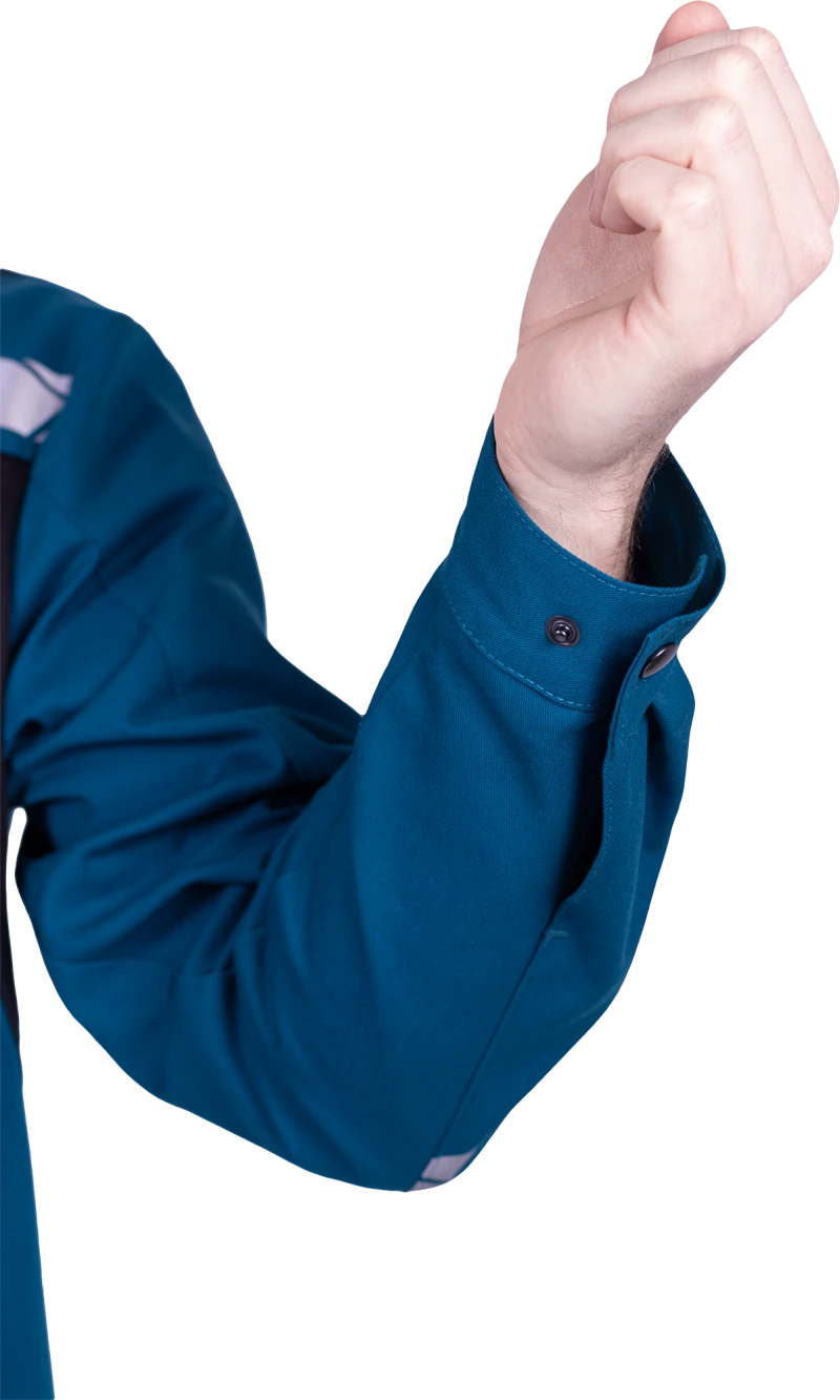 • рукава с локтевыми швами, с манжетами с застёжкой на кнопку с возможностью регулирования объема