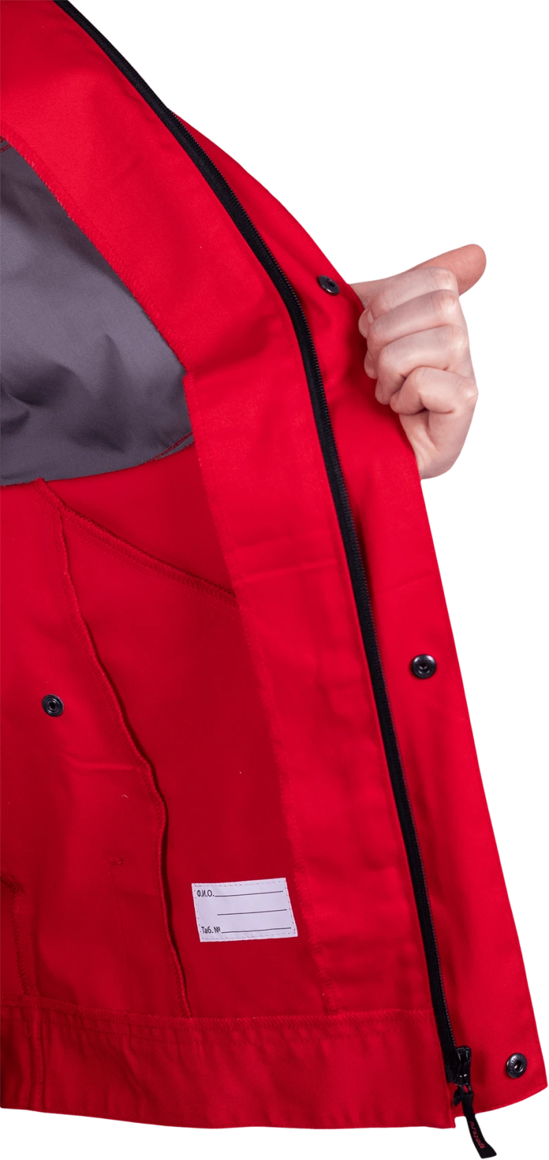 • правый нагрудный кармана в шве кокетки с горизонтальным входом, с тесьмой на кнопке для крепления пропуска
