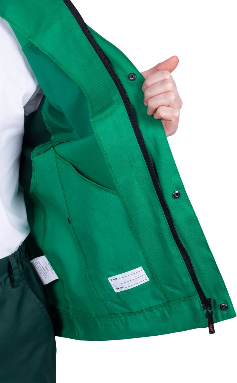 • правый нагрудный кармана в шве кокетки с горизонтальным входом, с тесьмой на кнопке для крепления пропуска